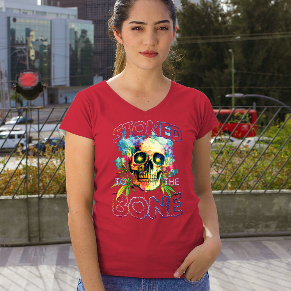 Turn heads with this bold, psychedelic “Stoned to the Bone†skull tee—loaded with neon colors, weed leaves, and a trippy aesthetic. It’s built for cannabis lovers, hippies, festival-goers, and party people living the high life. The ultimate head shop style and 420 fashion statement.