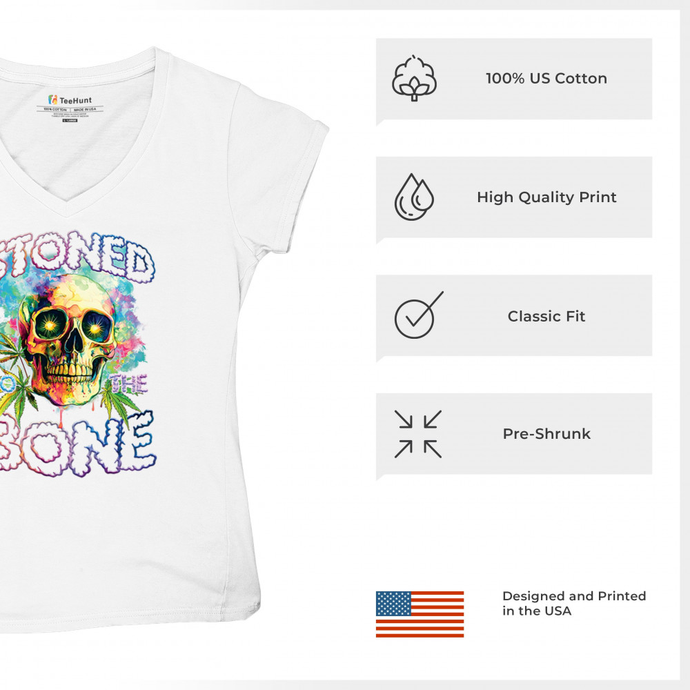 Turn heads with this bold, psychedelic “Stoned to the Bone†skull tee—loaded with neon colors, weed leaves, and a trippy aesthetic. It’s built for cannabis lovers, hippies, festival-goers, and party people living the high life. The ultimate head shop style and 420 fashion statement.