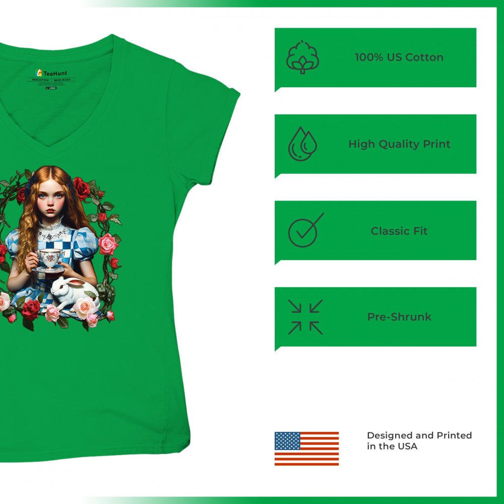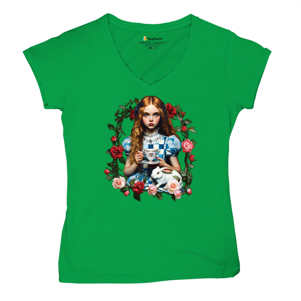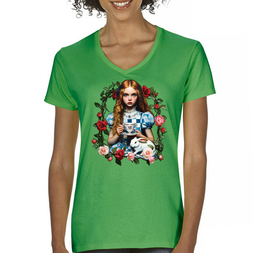 Step into a storybook dream with this Wonderland-inspired design featuring a young girl at a tea party with her white rabbit companion. Framed by roses, it evokes vintage charm, fantasy, and magical nostalgia. Ideal for bookworms, collectors, and lovers of fairytales, it blends whimsical elegance with timeless childhood wonder.