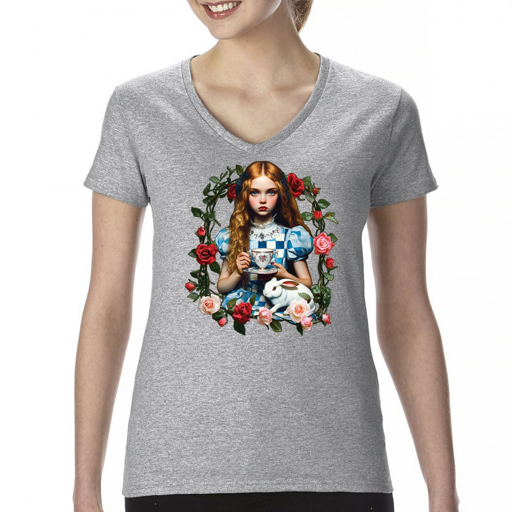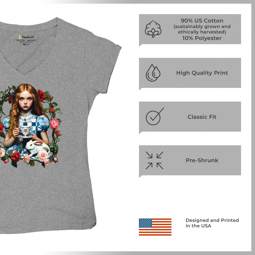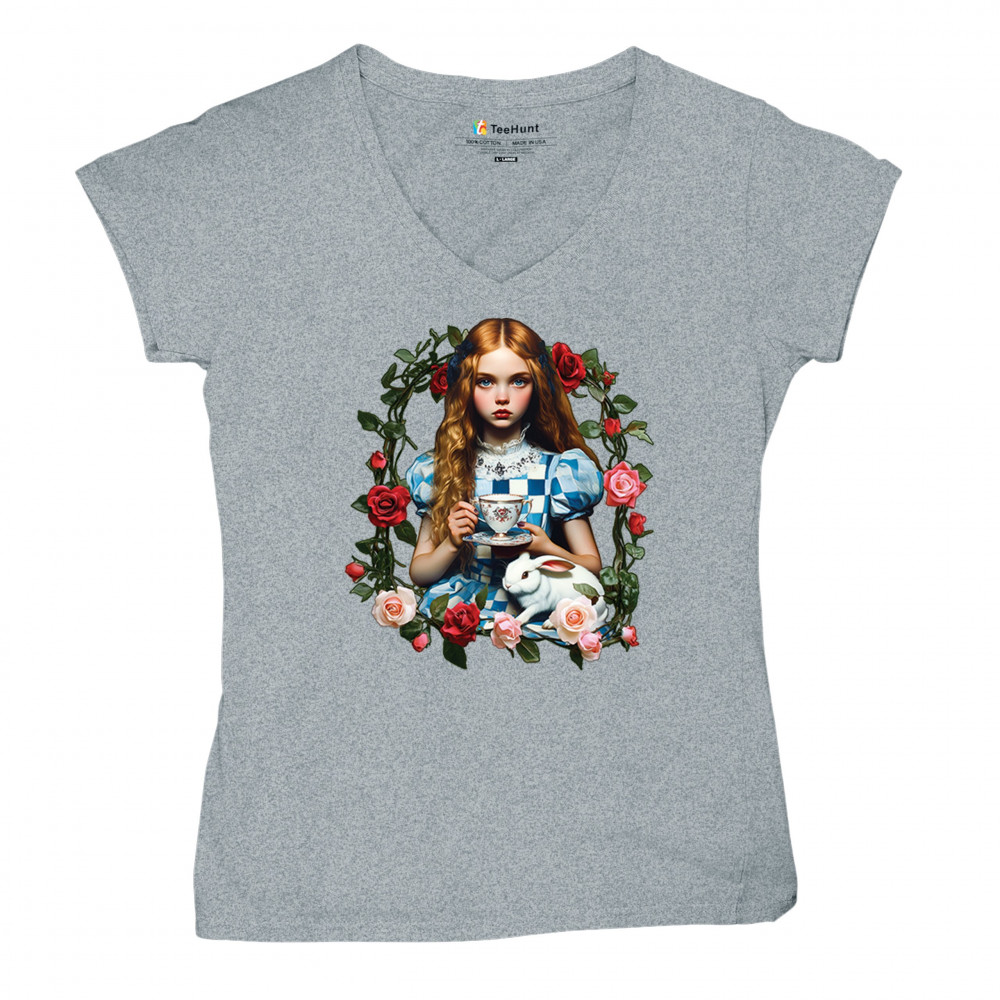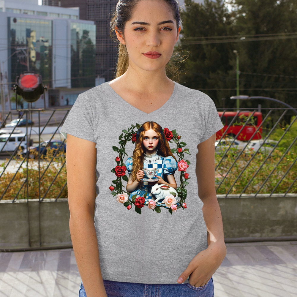 Step into a storybook dream with this Wonderland-inspired design featuring a young girl at a tea party with her white rabbit companion. Framed by roses, it evokes vintage charm, fantasy, and magical nostalgia. Ideal for bookworms, collectors, and lovers of fairytales, it blends whimsical elegance with timeless childhood wonder.