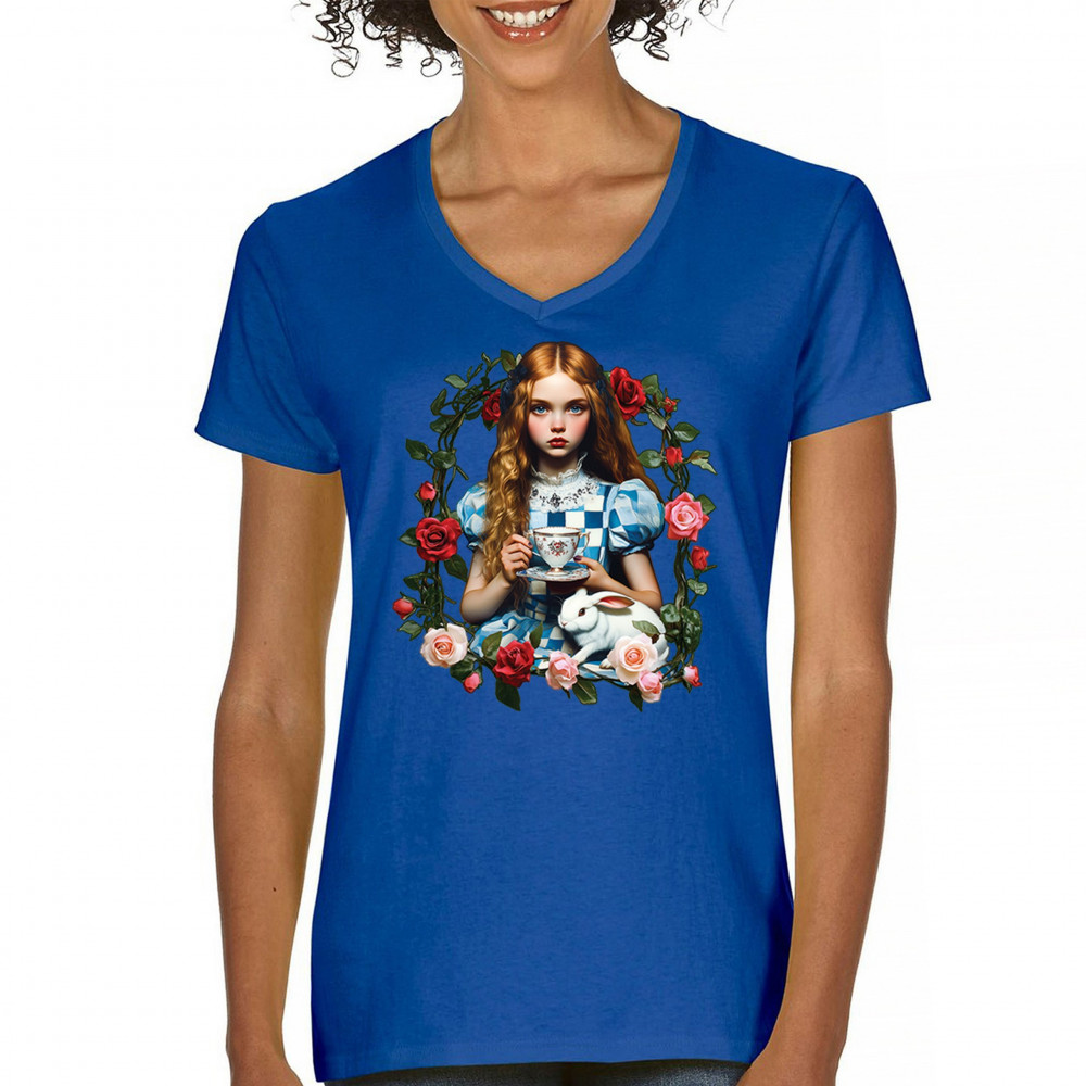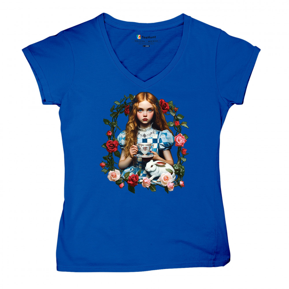 Step into a storybook dream with this Wonderland-inspired design featuring a young girl at a tea party with her white rabbit companion. Framed by roses, it evokes vintage charm, fantasy, and magical nostalgia. Ideal for bookworms, collectors, and lovers of fairytales, it blends whimsical elegance with timeless childhood wonder.