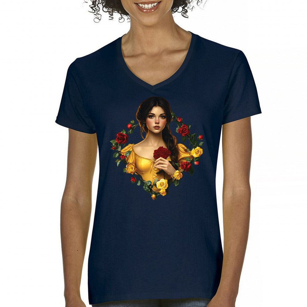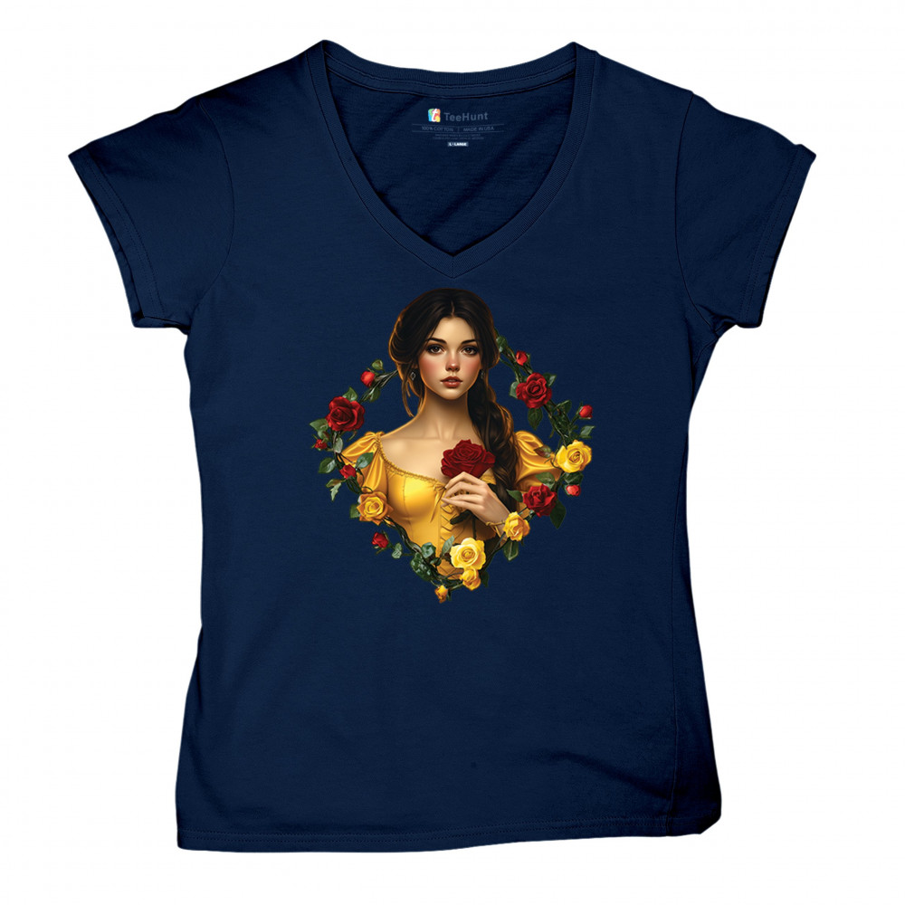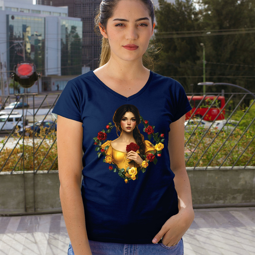 Inspired by classic fairytales, this design features a girl in a yellow gown holding a red rose, framed by rich red and yellow roses. A tribute to Beauty and the Beast, it radiates warmth, romance, and timeless fantasy. Perfect for storybook lovers, enchanted art collectors, or those drawn to magical, symbolic imagery filled with beauty and grace.