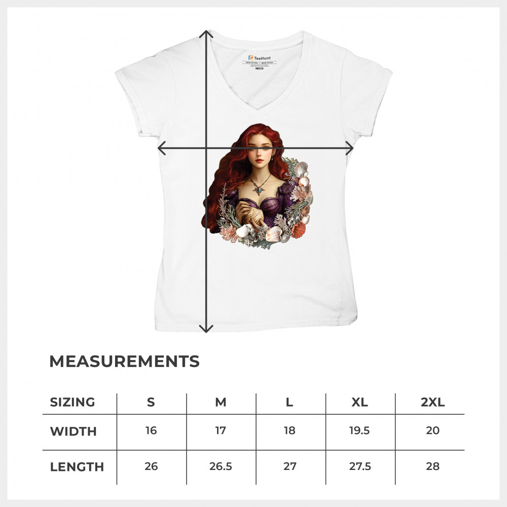 Fantasy mermaid design with red-haired girl, seashell dress, coral, and sea life. A dreamy tribute to marine magic and coastal fairytales.