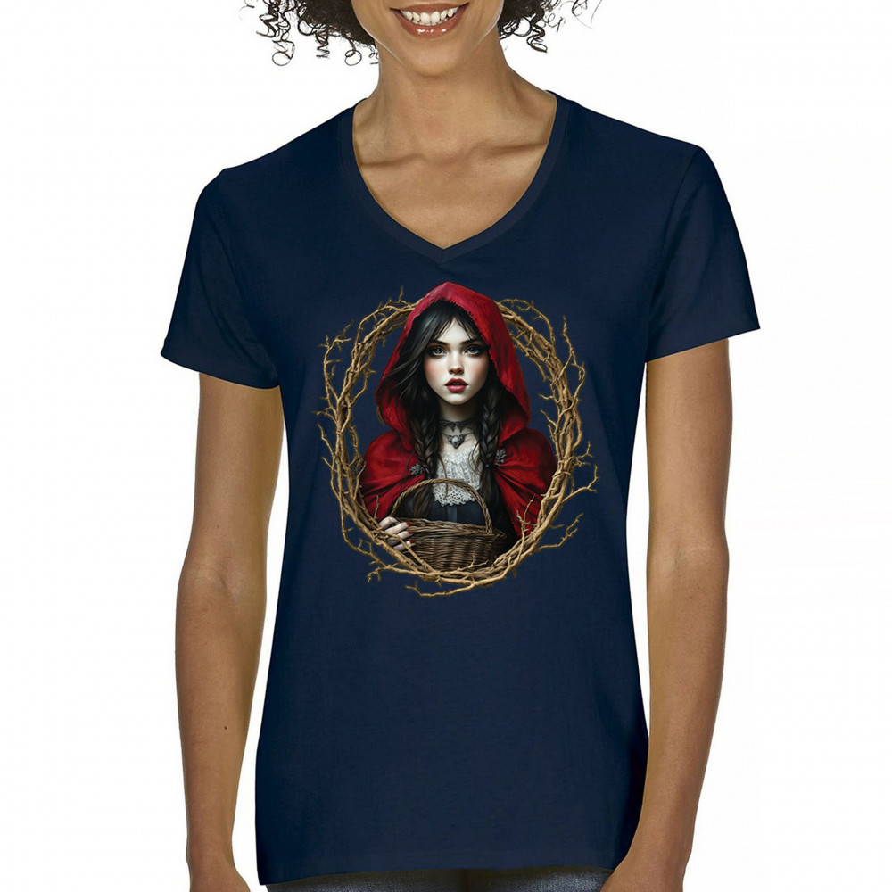 Step into a shadowy fairytale with this gothic design featuring a red-cloaked girl and twisted forest branches. Evoking themes from Red Riding Hood and folklore magic, it’s rich in fantasy, mystery, and dark aesthetic. Perfect for fantasy lovers, dark romantics, and storybook dreamers drawn to enchanted paths and eerie tales.