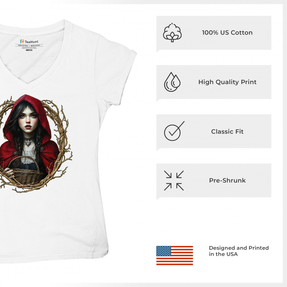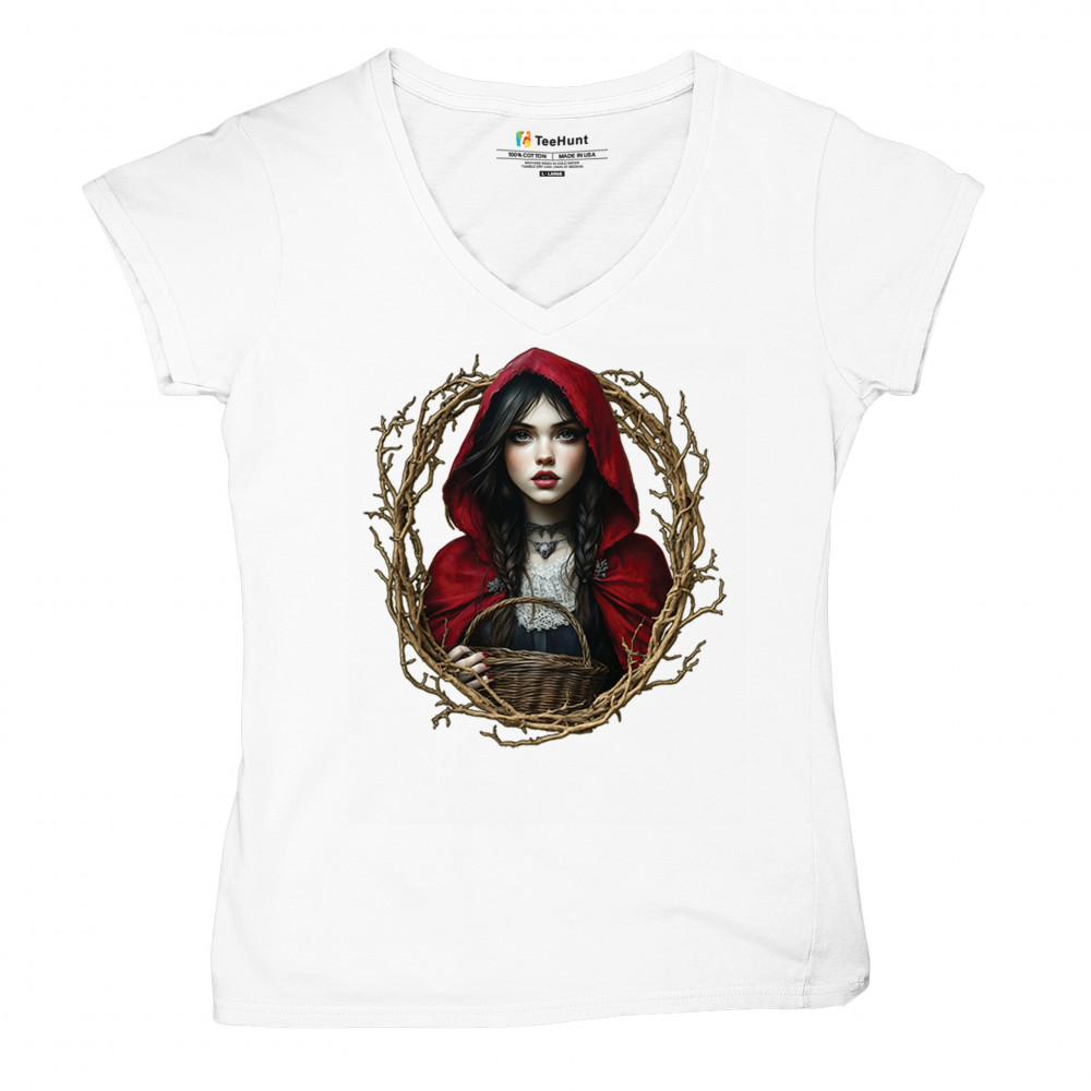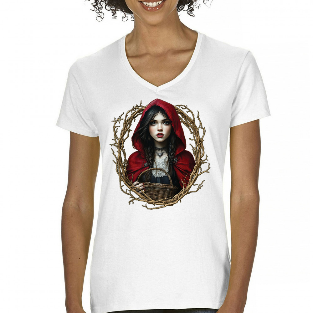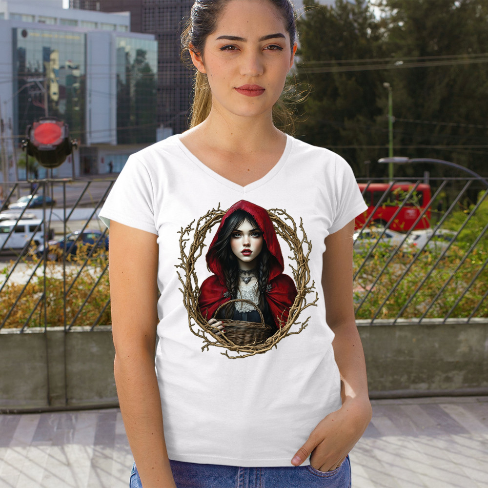 Step into a shadowy fairytale with this gothic design featuring a red-cloaked girl and twisted forest branches. Evoking themes from Red Riding Hood and folklore magic, it’s rich in fantasy, mystery, and dark aesthetic. Perfect for fantasy lovers, dark romantics, and storybook dreamers drawn to enchanted paths and eerie tales.