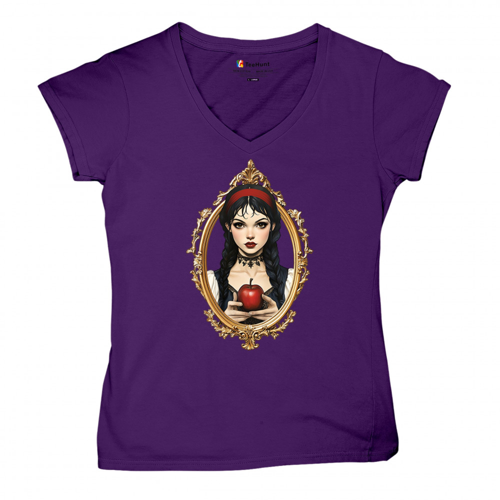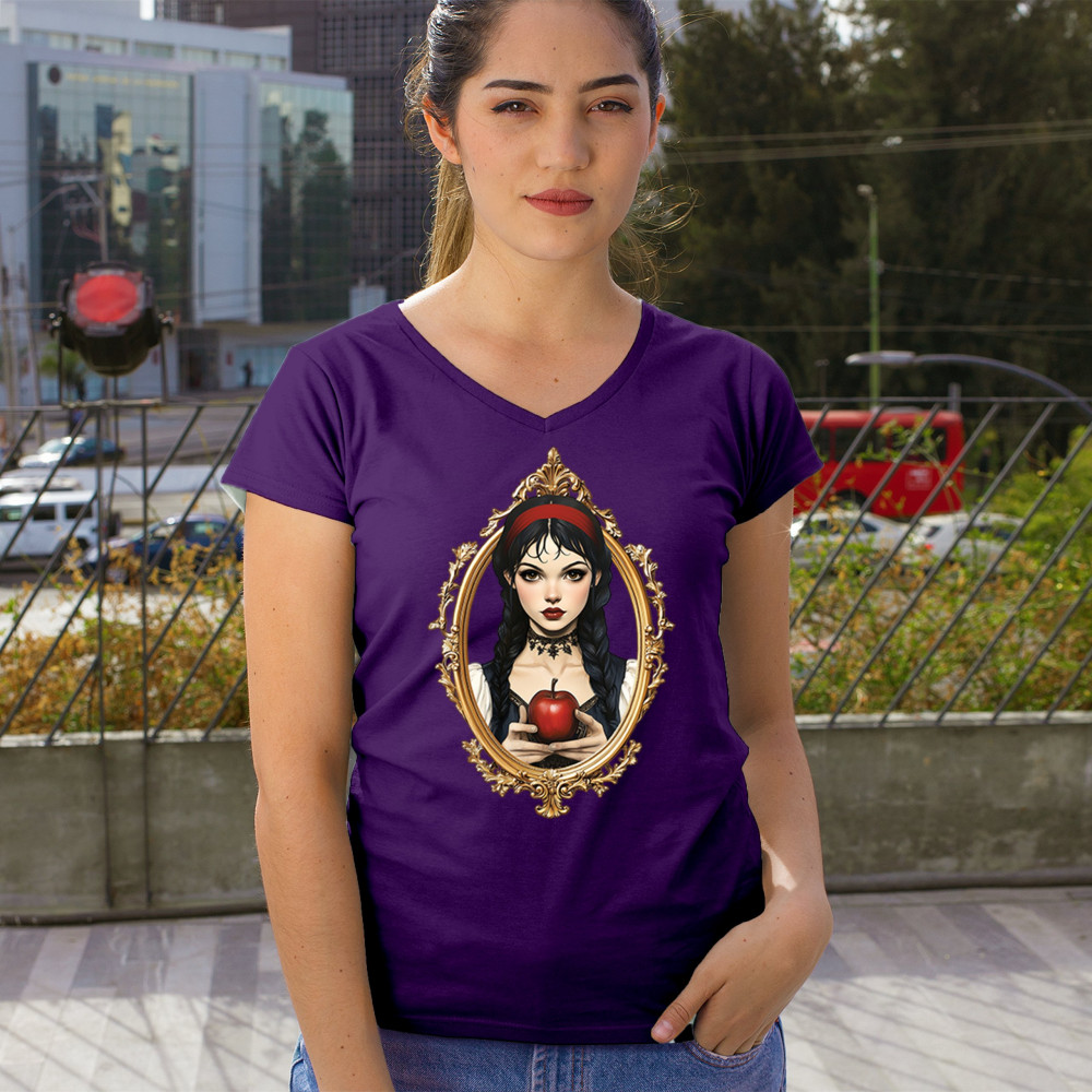 Dark fairytale design with red apple, gold frame, and Snow White vibes. A dreamy blend of fantasy, gothic style, and magical storytelling.