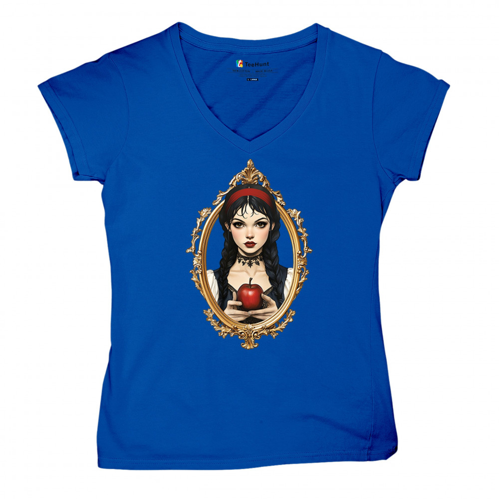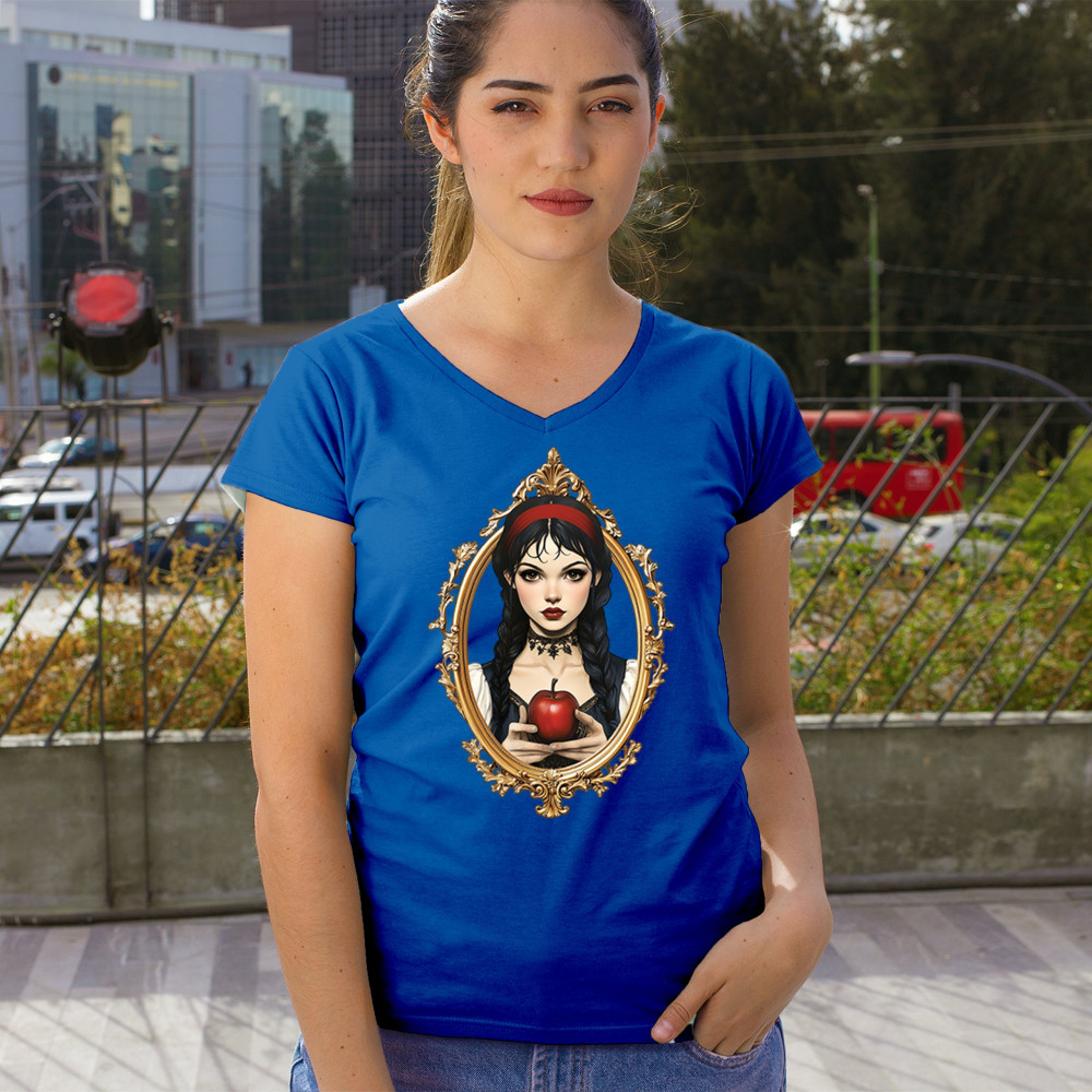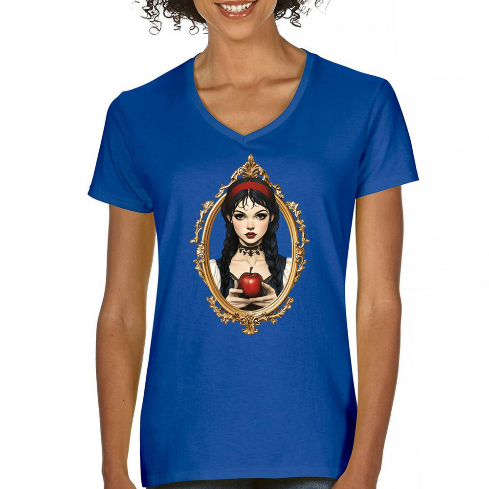 Dark fairytale design with red apple, gold frame, and Snow White vibes. A dreamy blend of fantasy, gothic style, and magical storytelling.