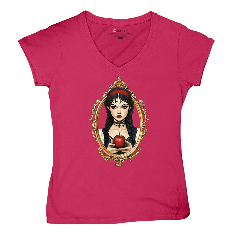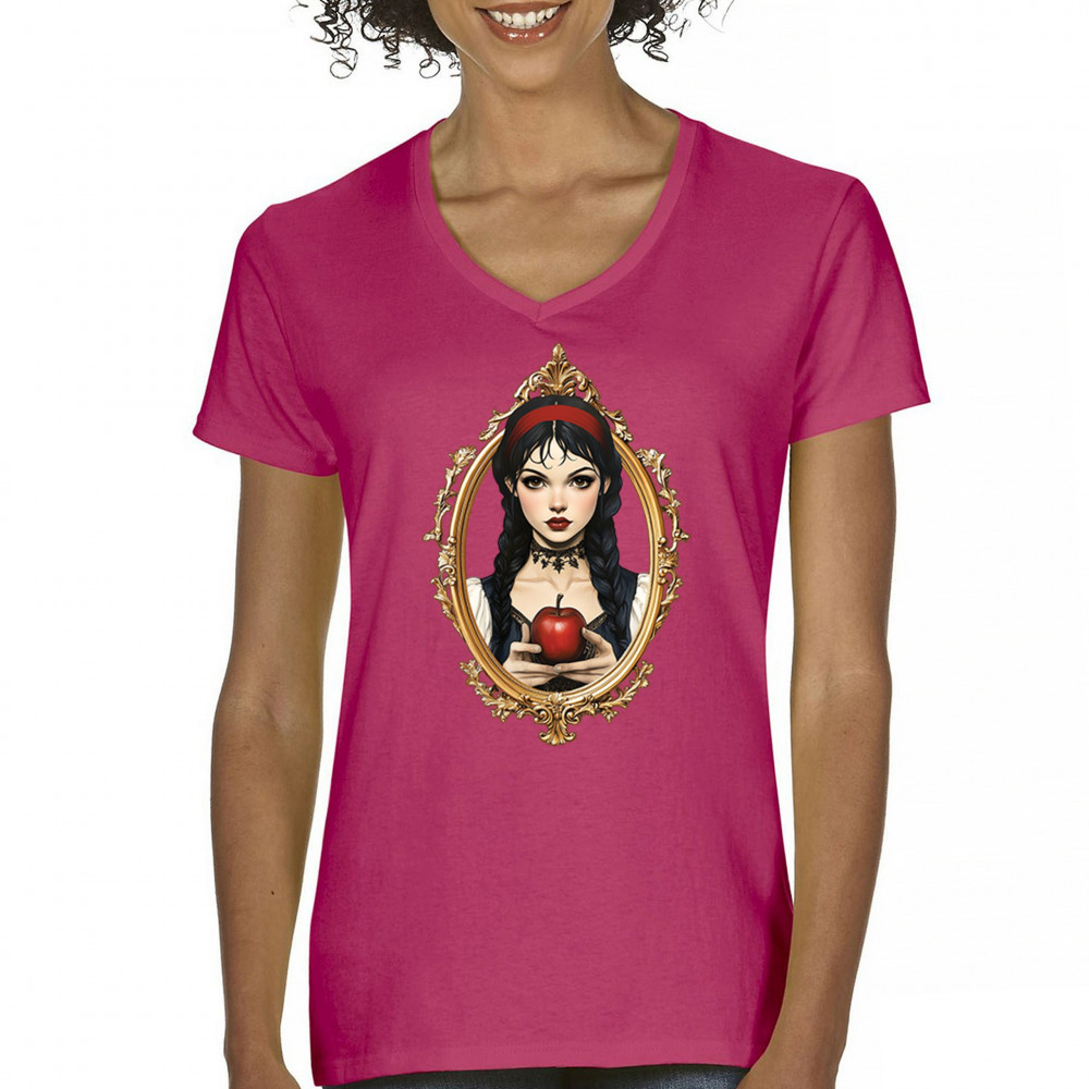 Dark fairytale design with red apple, gold frame, and Snow White vibes. A dreamy blend of fantasy, gothic style, and magical storytelling.