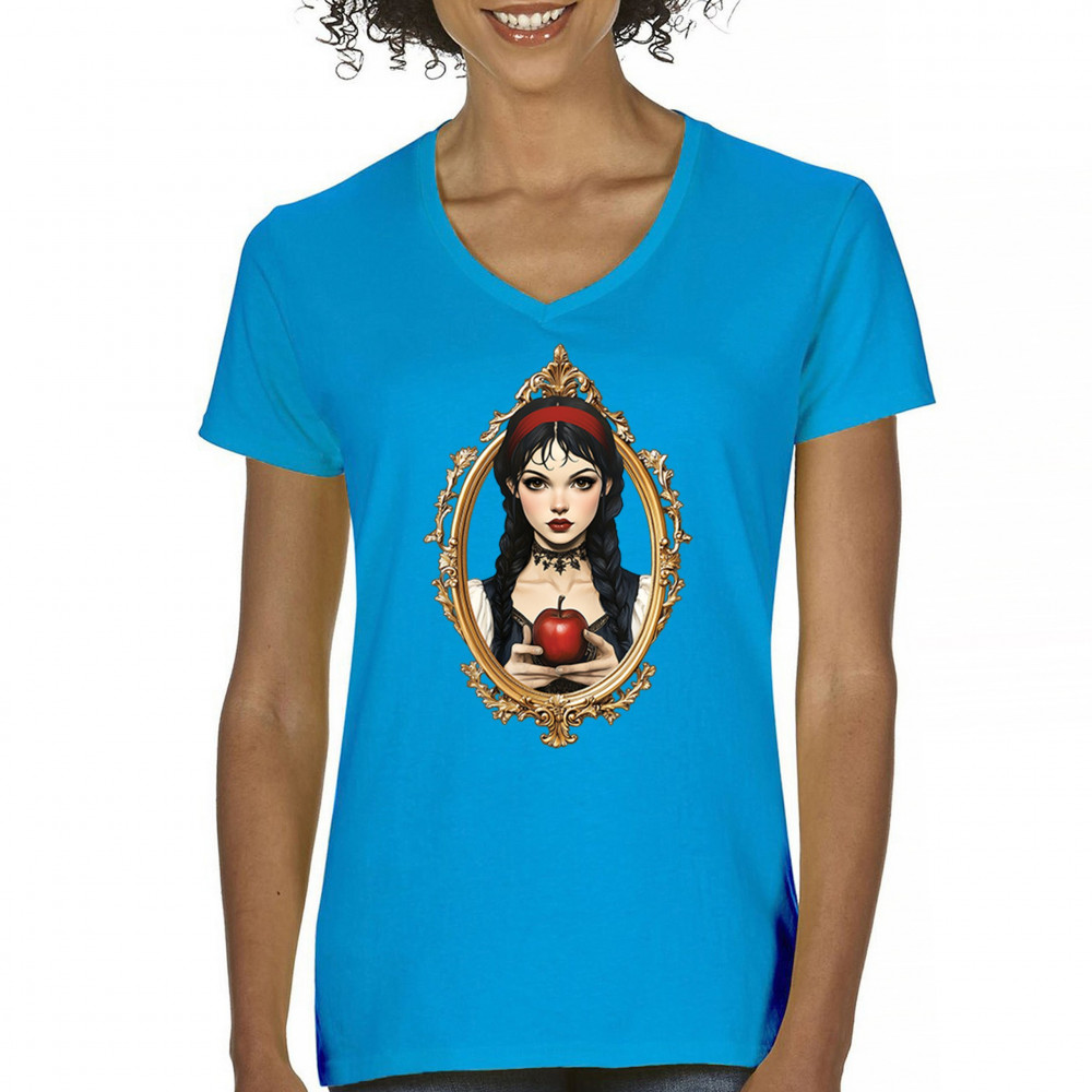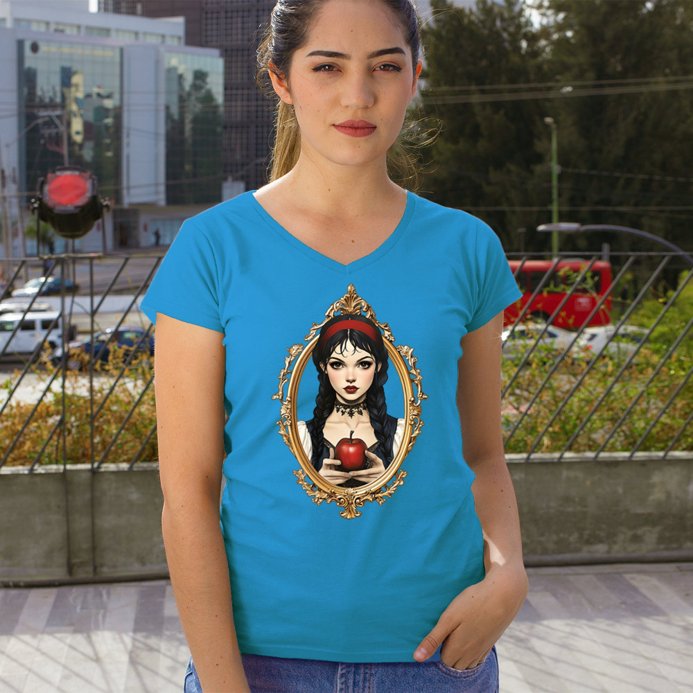 Dark fairytale design with red apple, gold frame, and Snow White vibes. A dreamy blend of fantasy, gothic style, and magical storytelling.