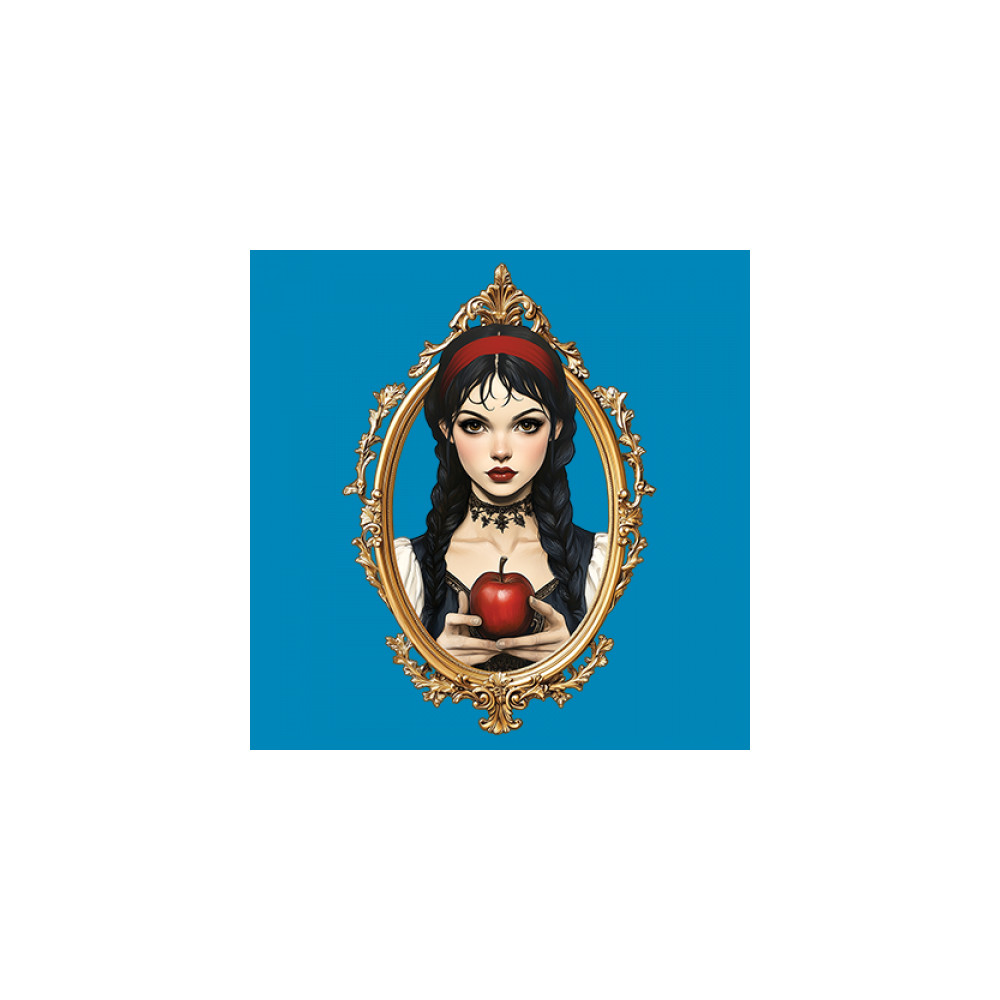 This enchanting design brings to life a gothic-inspired girl holding a red apple, encased in a regal vintage mirror frame. With elements pulled from Snow White, fairytales, and fantasy symbolism, it blends innocence and temptation with dark romanticism. Perfect for dreamers, collectors, and lovers of magical narratives and visual elegance.