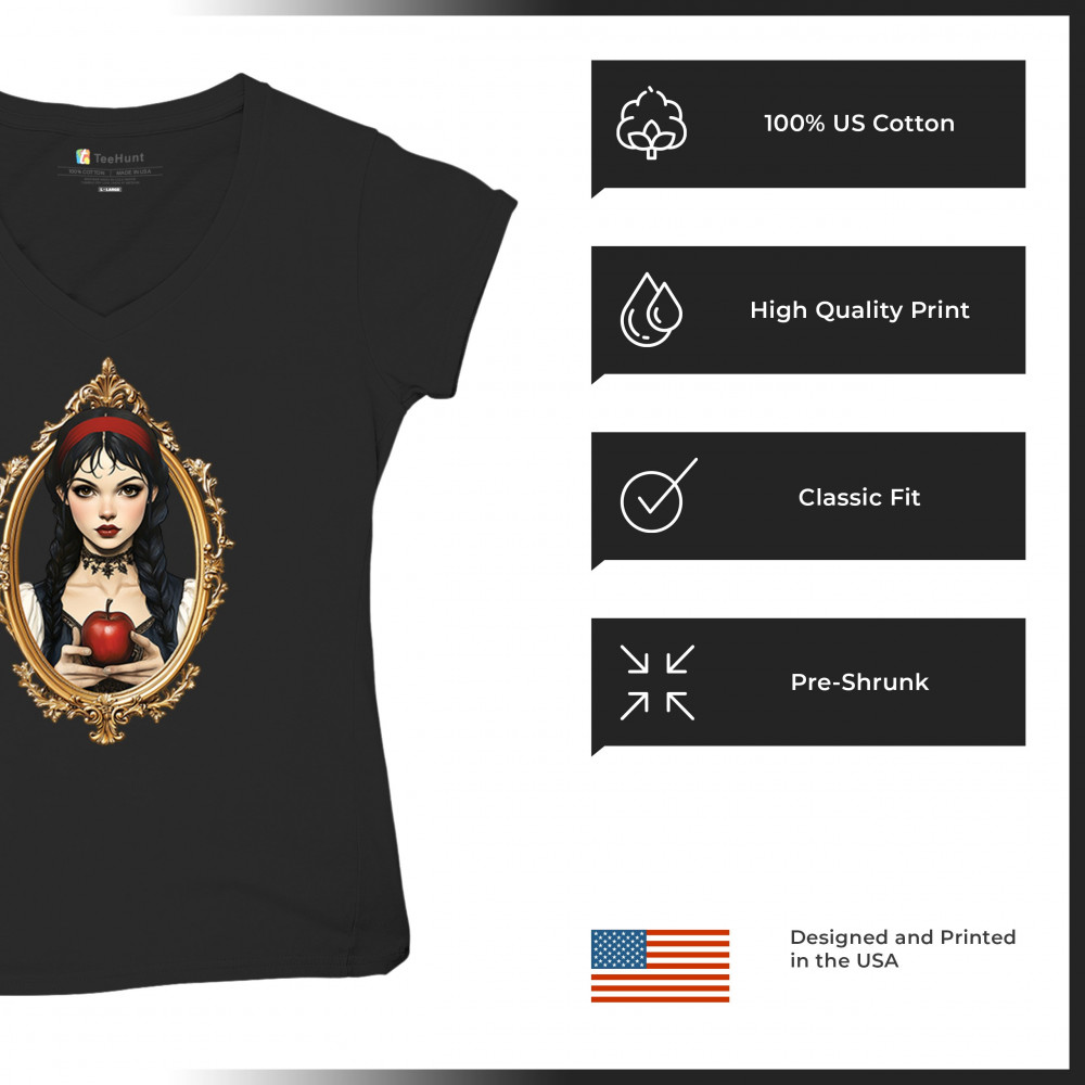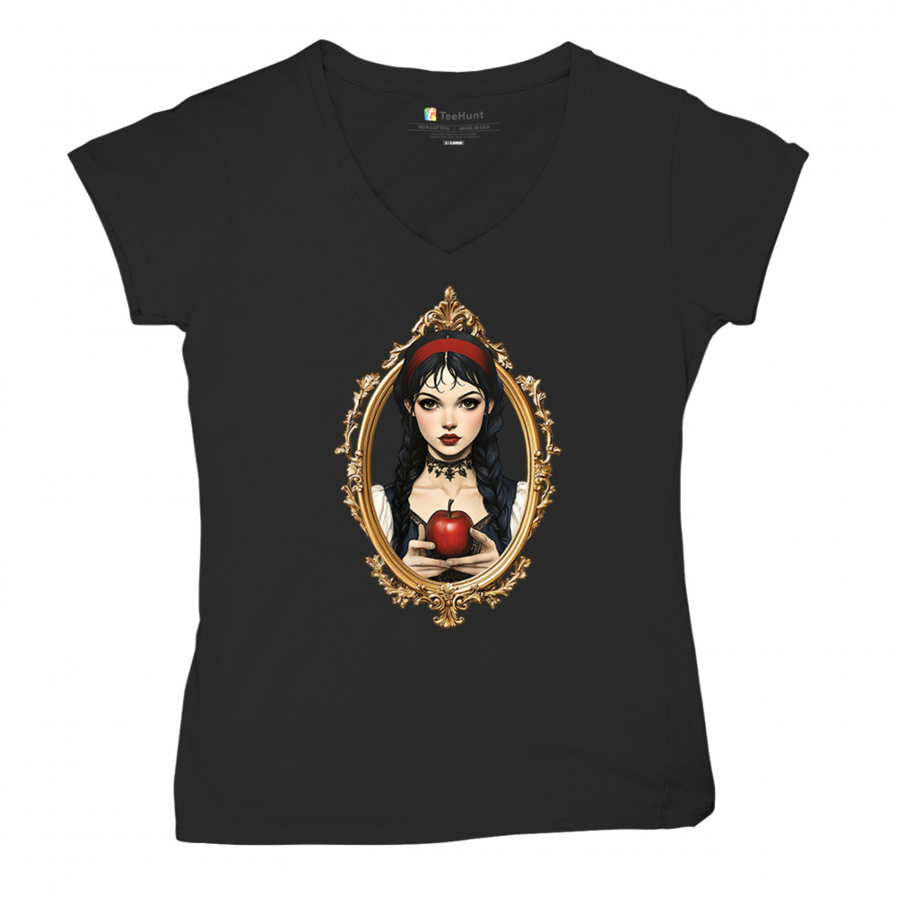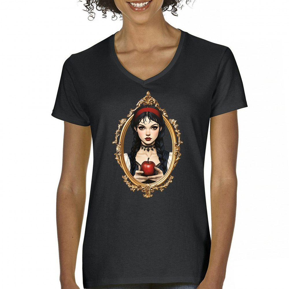STORYBOOK SNOW WHITE women's v-neck t-shirt gothic fairytale cute princess tee black