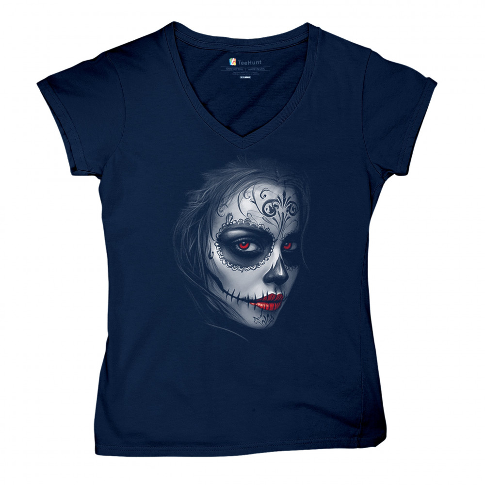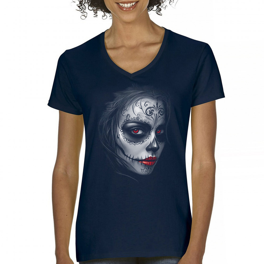 Glowing red eyes and red lips bring this sugar skull design to life. Featuring floral skull makeup, dark shadows, and gothic energy, it's a perfect pick for Halloween, DÃa de los Muertos, or alt culture fashion. Ideal for fans of bold beauty, spooky glamour, and skull art with an edge.