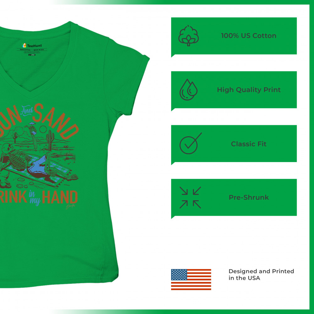 Relive your beach memories with our 'Sun, Sand, and Drink in Hand' design, evoking the carefree spirit of summer days.