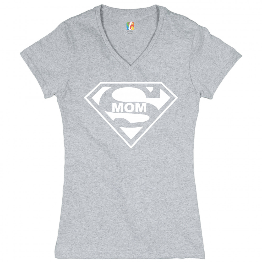 SUPER MOM FUNNY women's v-neck t-shirt superhero parody mother's day tee gray
