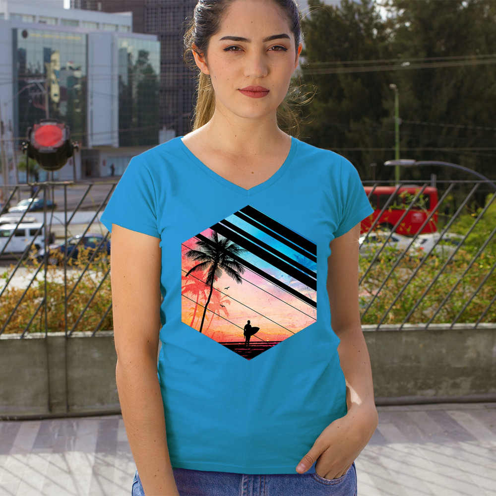 Catch the vibe of endless summer with our surf-inspired tee. Featuring silhouetted palms, warm gradients, and cool geometric shapes, it’s a visual journey from the urban grind to tropical tranquility. This tee is for the soul surfers and dreamers, made to be as enduring as the memories of your last wave. It's more than apparel—it’s a horizon of possibilities. Add this staple to your collection and let the good times roll.