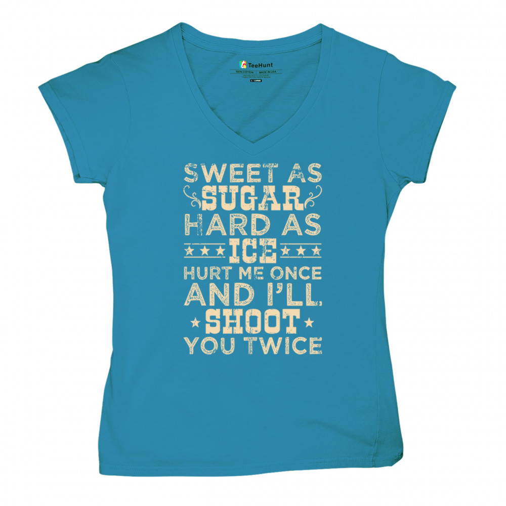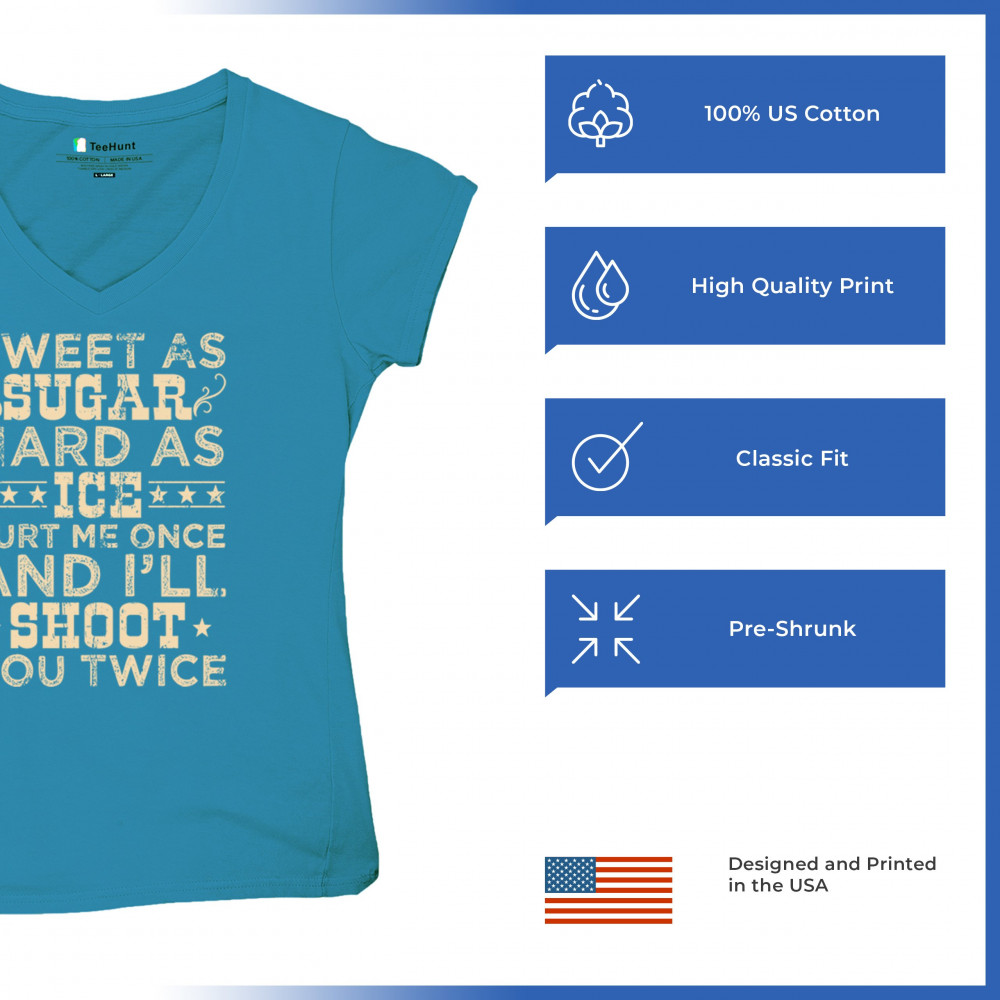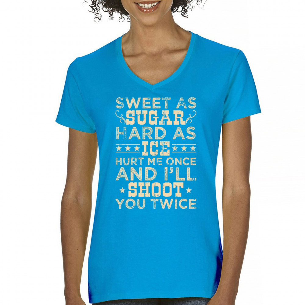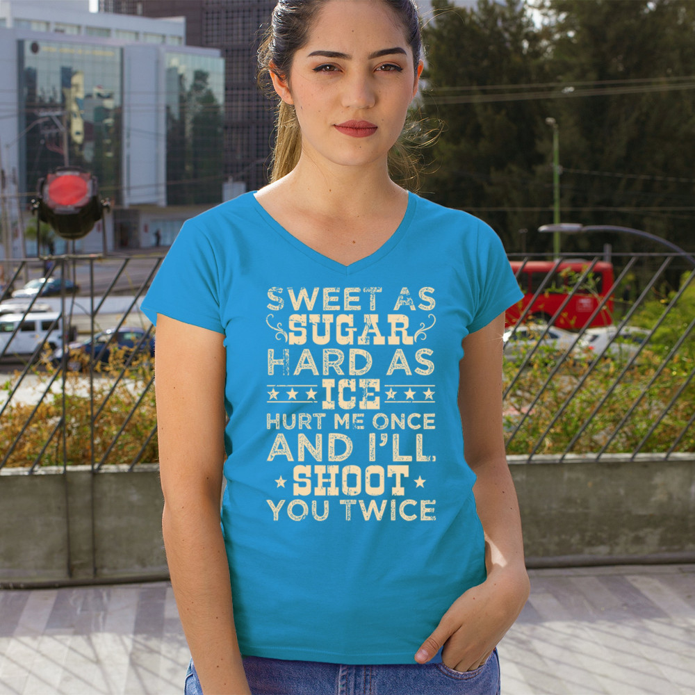 Declare your stance with this bold pro-gun design featuring the quote "Sweet as Sugar, Hard as Ice, Hurt Me Once, I’ll Shoot You Twice." Made for patriots, firearm enthusiasts, military supporters, and defenders of the Constitution. The design blends American pride, 2nd Amendment power, and personal grit in one fierce statement of freedom and justice.