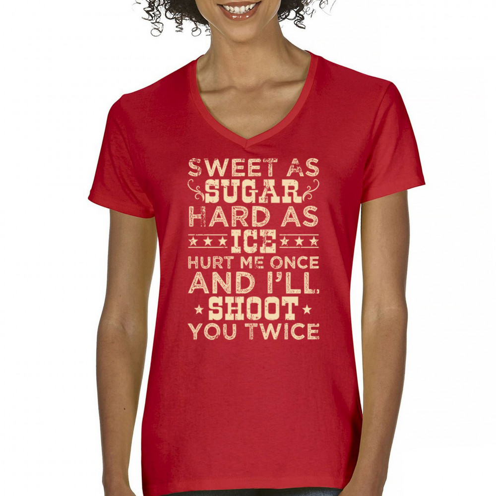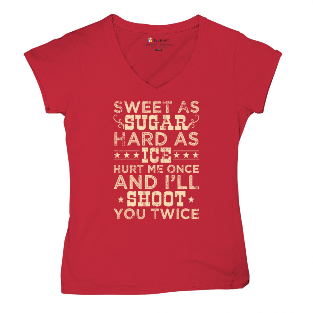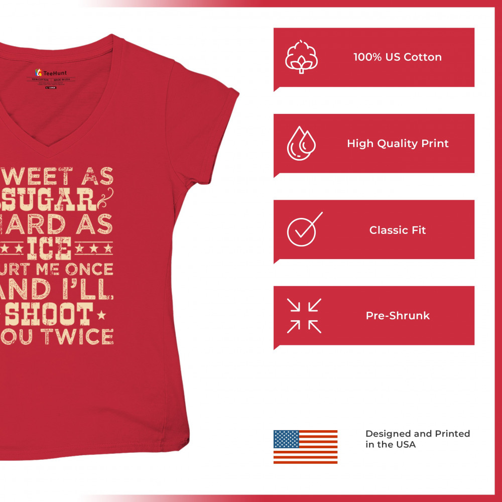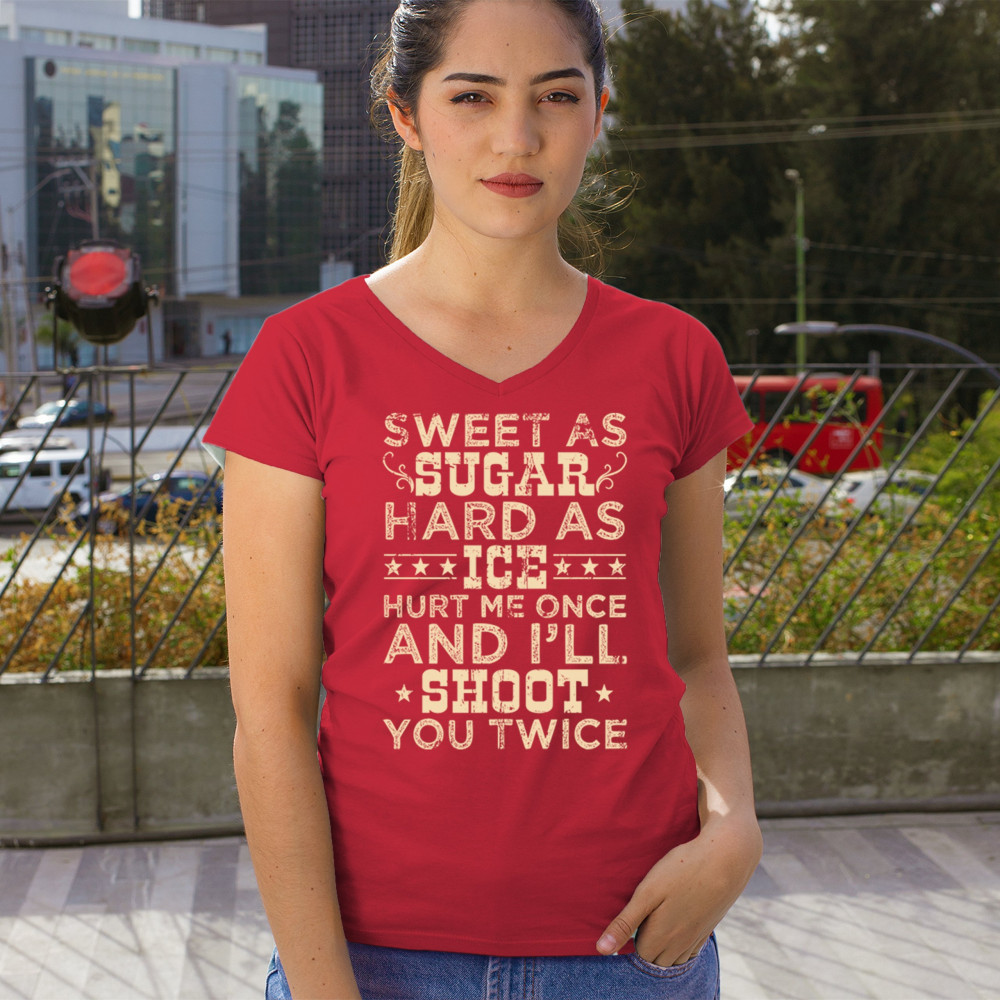 Declare your stance with this bold pro-gun design featuring the quote "Sweet as Sugar, Hard as Ice, Hurt Me Once, I’ll Shoot You Twice." Made for patriots, firearm enthusiasts, military supporters, and defenders of the Constitution. The design blends American pride, 2nd Amendment power, and personal grit in one fierce statement of freedom and justice.