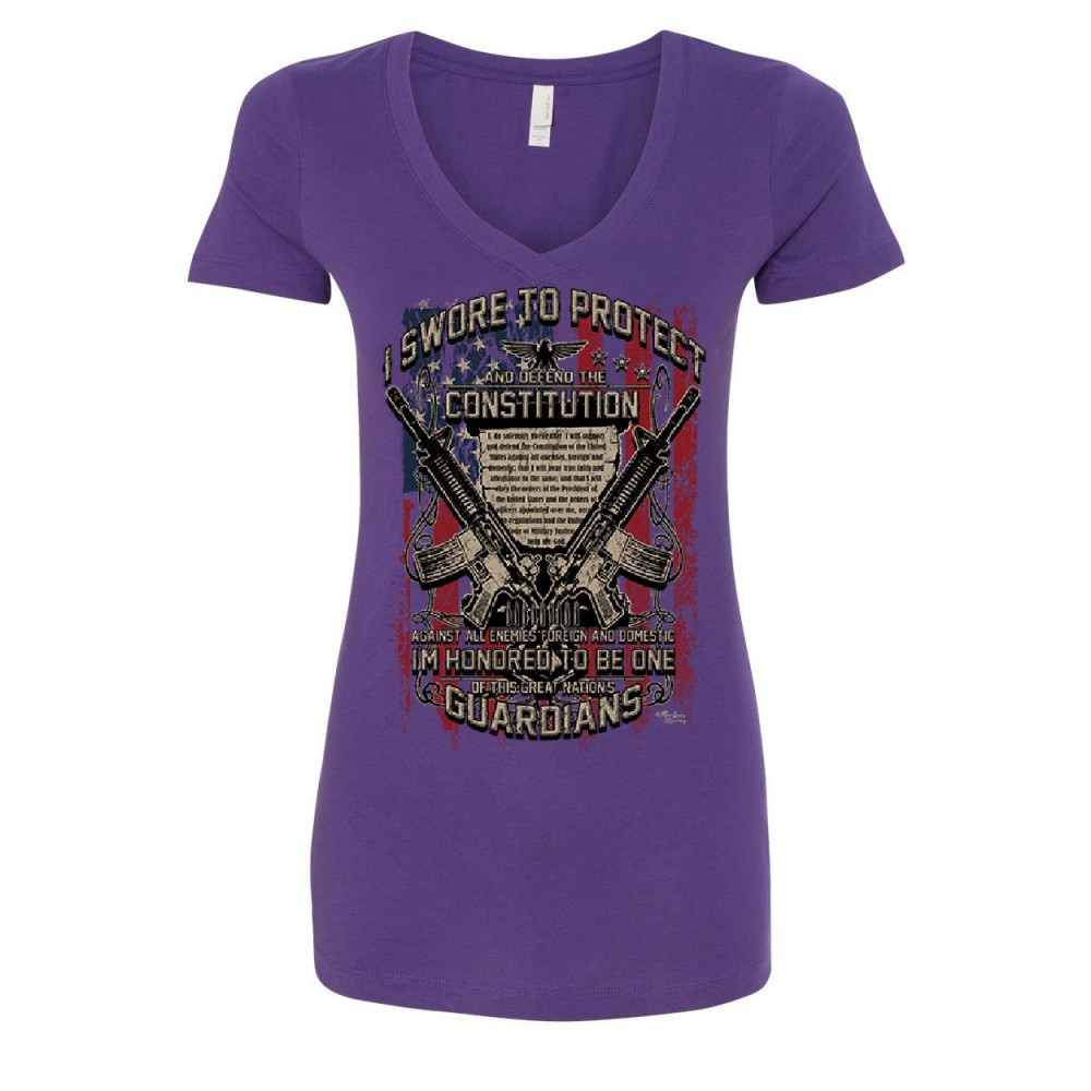 DEFEND THE CONSTITUTION swore to protect women's v-neck t-shirt guardian nation purple