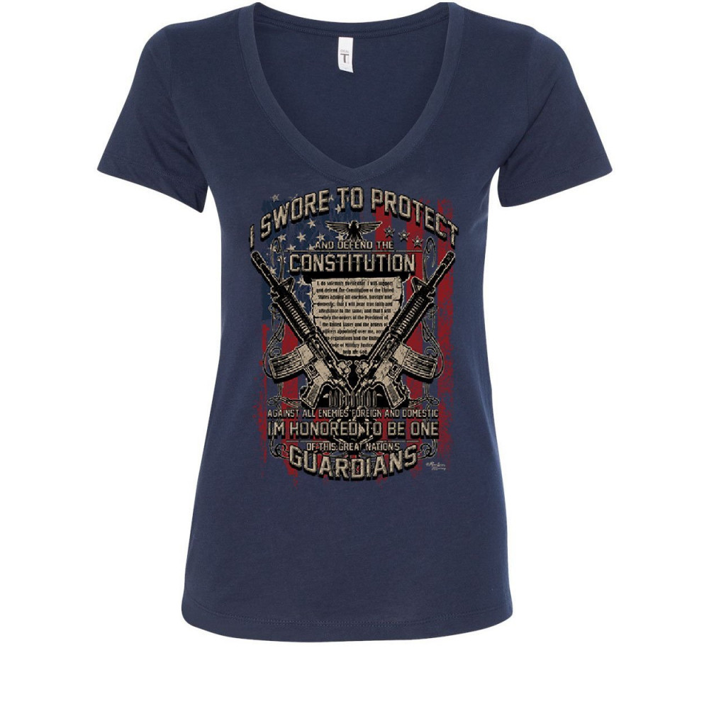 DEFEND THE CONSTITUTION swore to protect women's v-neck t-shirt guardian nation navy blue