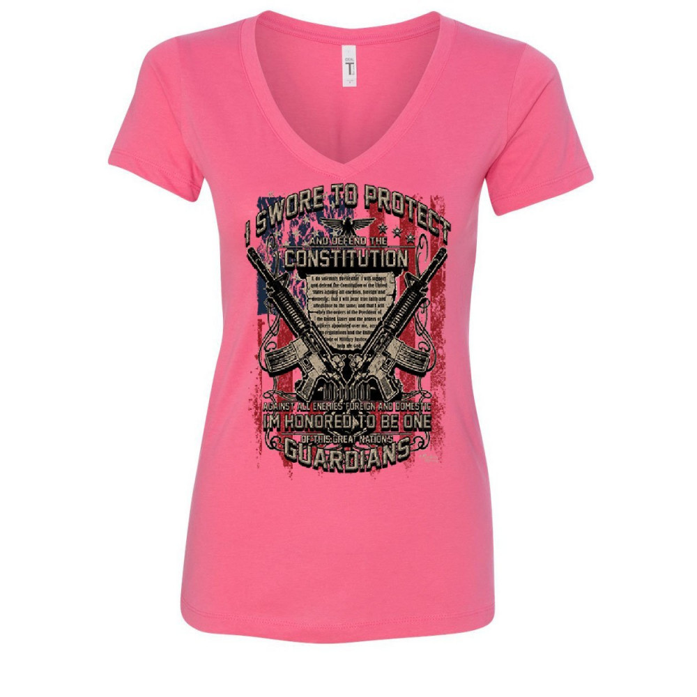 DEFEND THE CONSTITUTION swore to protect women's v-neck t-shirt guardian nation pink