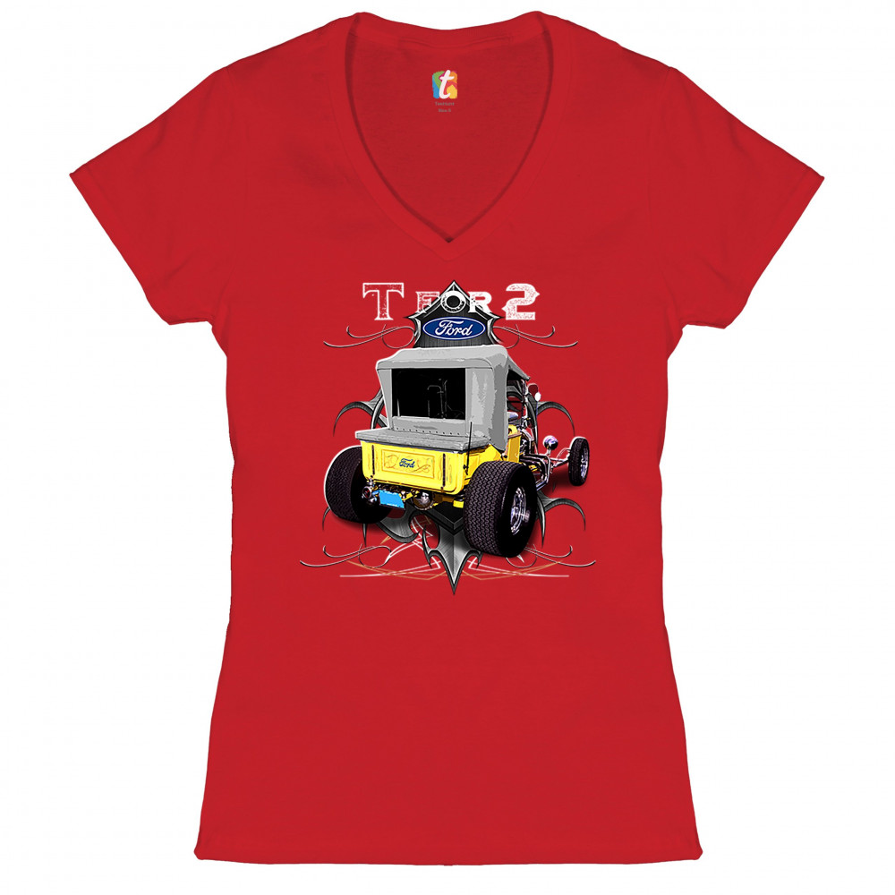 T FOR 2 women's v-neck t-shirt ford model t hot rod muscle car licensed tee red