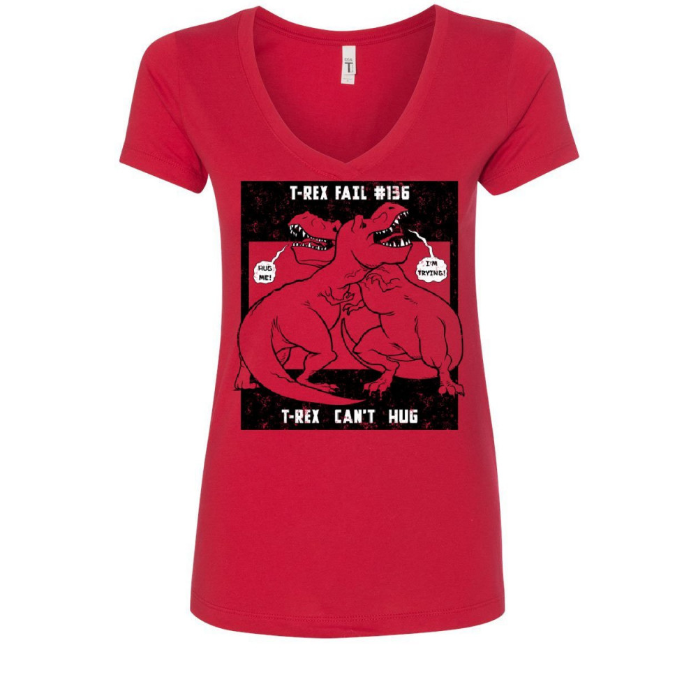 T-REX CAN'T HUG women's v-neck t-shirt funny t-rex dinosaur fail tyrannosaurus red