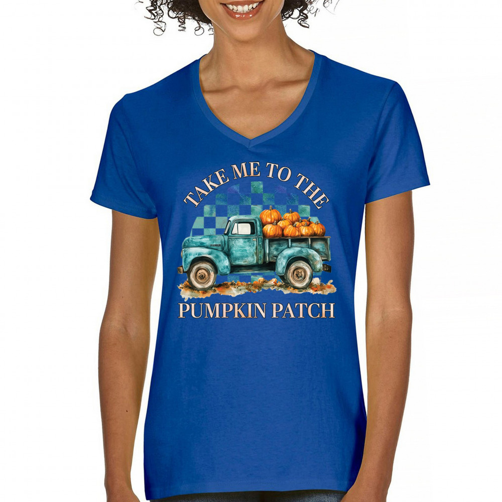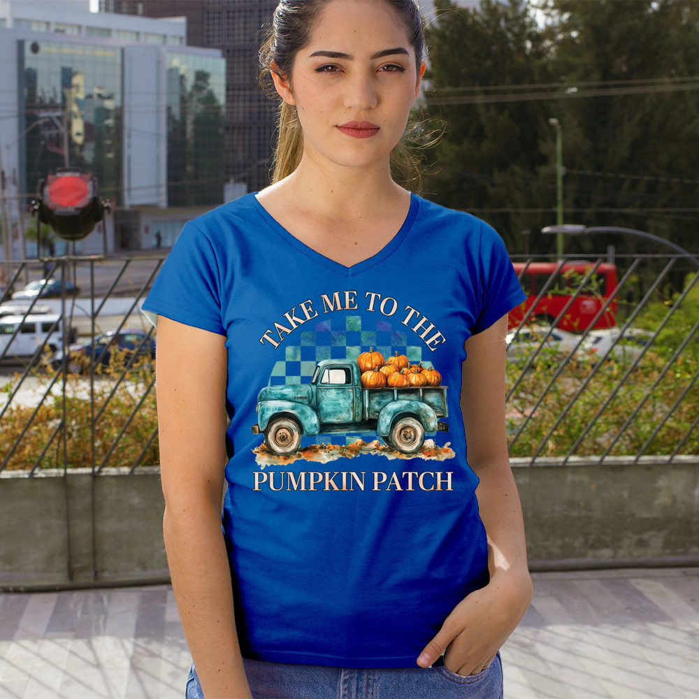 Celebrate autumn in style with the "Take Me to the Pumpkin Patch" design, featuring a vintage truck and festive pumpkins—perfect for fall lovers!