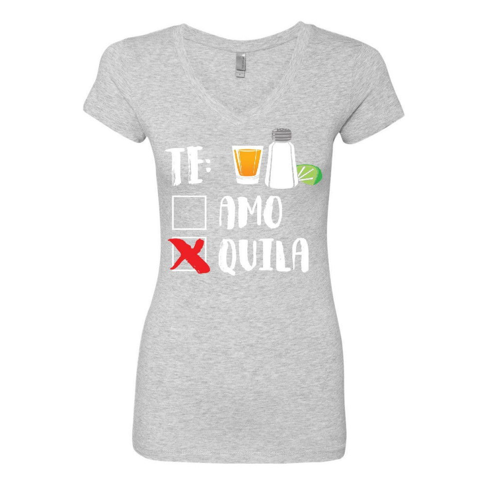 TE AMO OR TEQUILA women's v-neck t-shirt funny cinco de mayo & drinko mexican gray