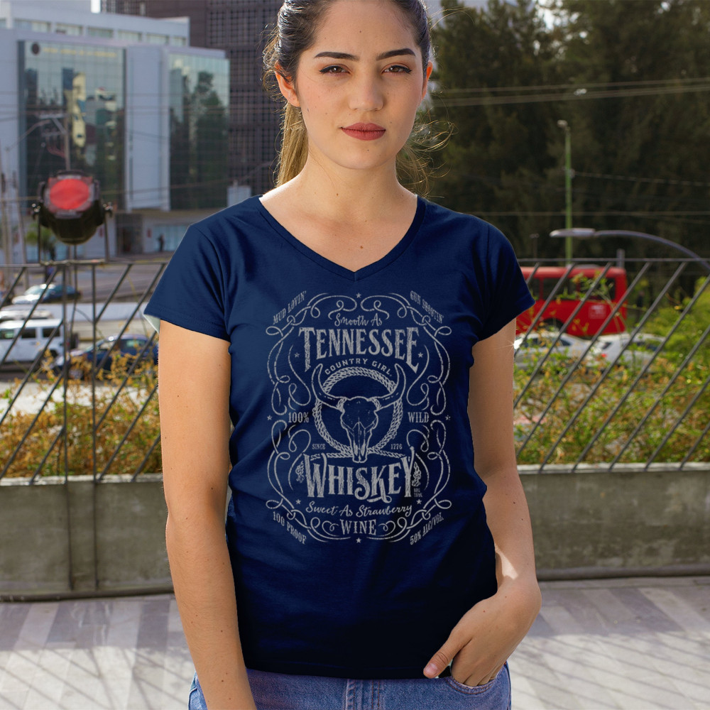 Country girl whiskey design with vintage bull skull, southern charm, and retro Tennessee pride. Perfect for rodeos, parties, or chill nights.