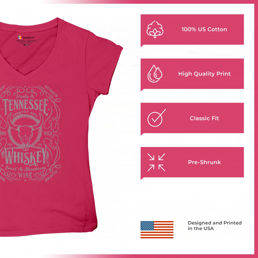 Smooth As Tennessee Whiskey, Sweet As Strawberry Wine. This country girl design delivers retro charm with bold lettering, a vintage bull skull, and classic southern pride. Perfect for cowgirls who love dirt roads, music festivals, rodeos, or a night of whiskey and wine under the stars.