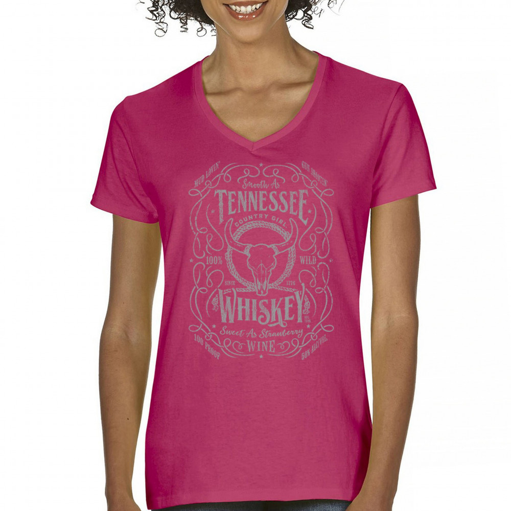 Country girl whiskey design with vintage bull skull, southern charm, and retro Tennessee pride. Perfect for rodeos, parties, or chill nights.