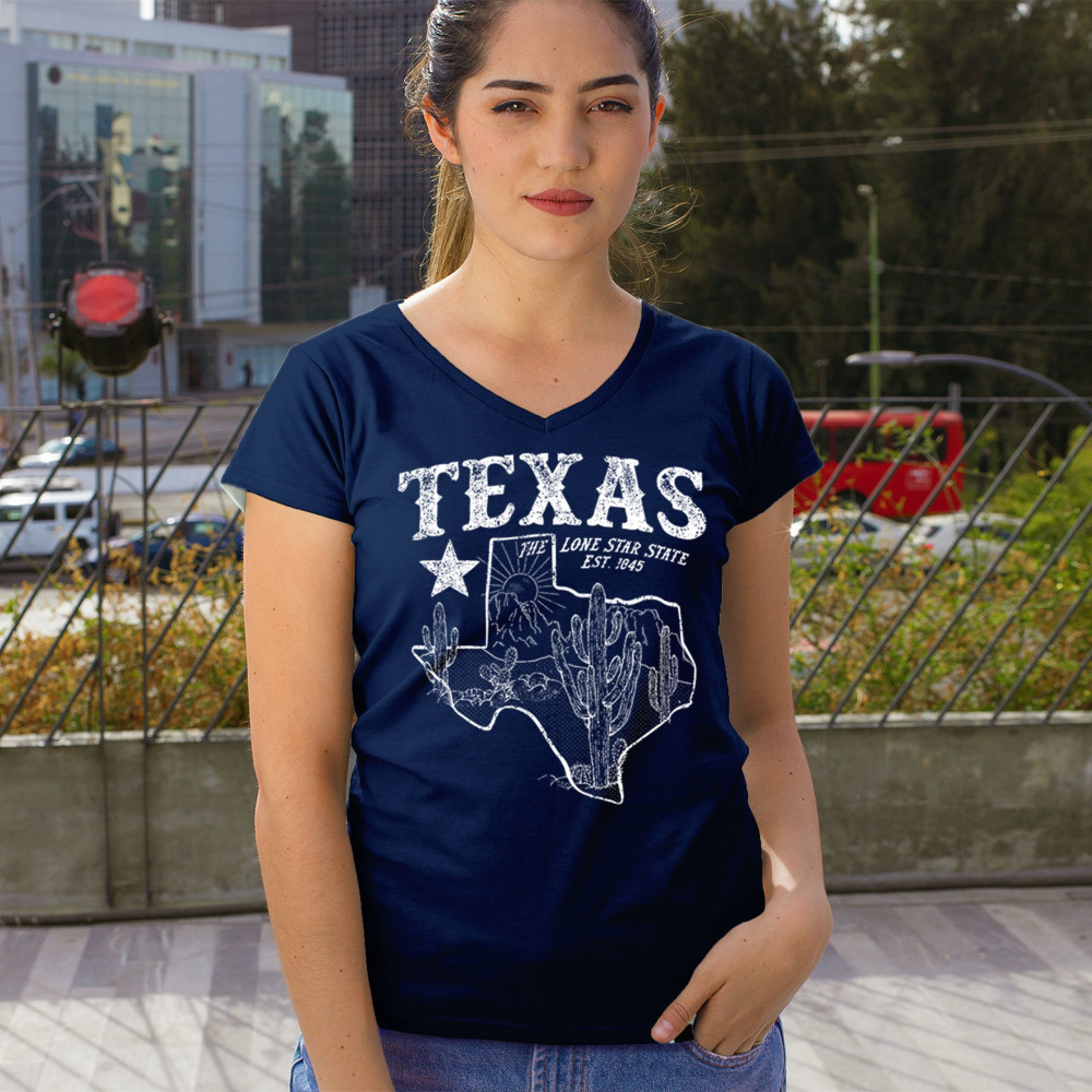 Celebrate the Lone Star State with this rugged Texas map design featuring cactus, mountains, and bold state pride text. A rustic southwestern tribute to the state’s heritage, established in 1845, it’s the perfect look for rodeos, country festivals, and lovers of the Texas desert lifestyle and scenery.