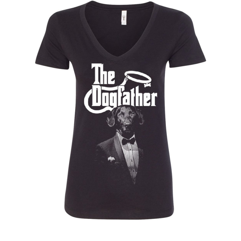 THE DOGFATHER FUNNY women's v-neck t-shirt parody dog lovers pet best friend black
