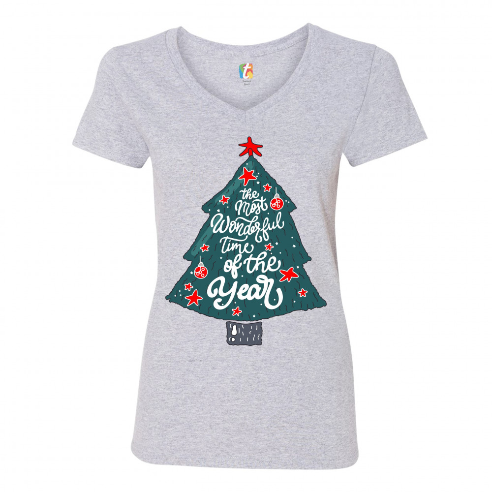 THE MOST WONDERFUL TIME OF THE YEAR women's v-neck t-shirt christmas tree tee gray