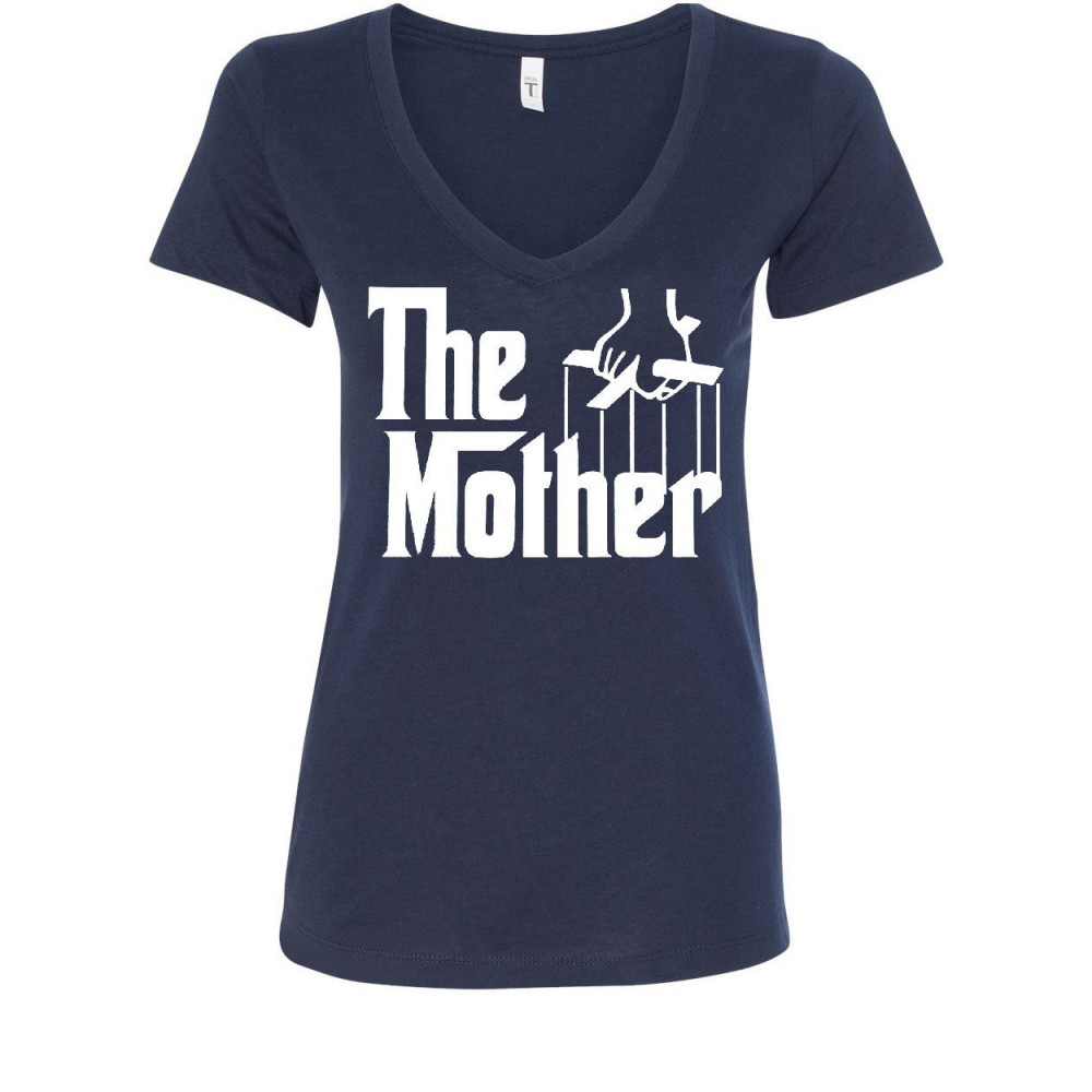 THE MOTHER women's v-neck t-shirt movie parody funny mother's day mommy mama navy blue