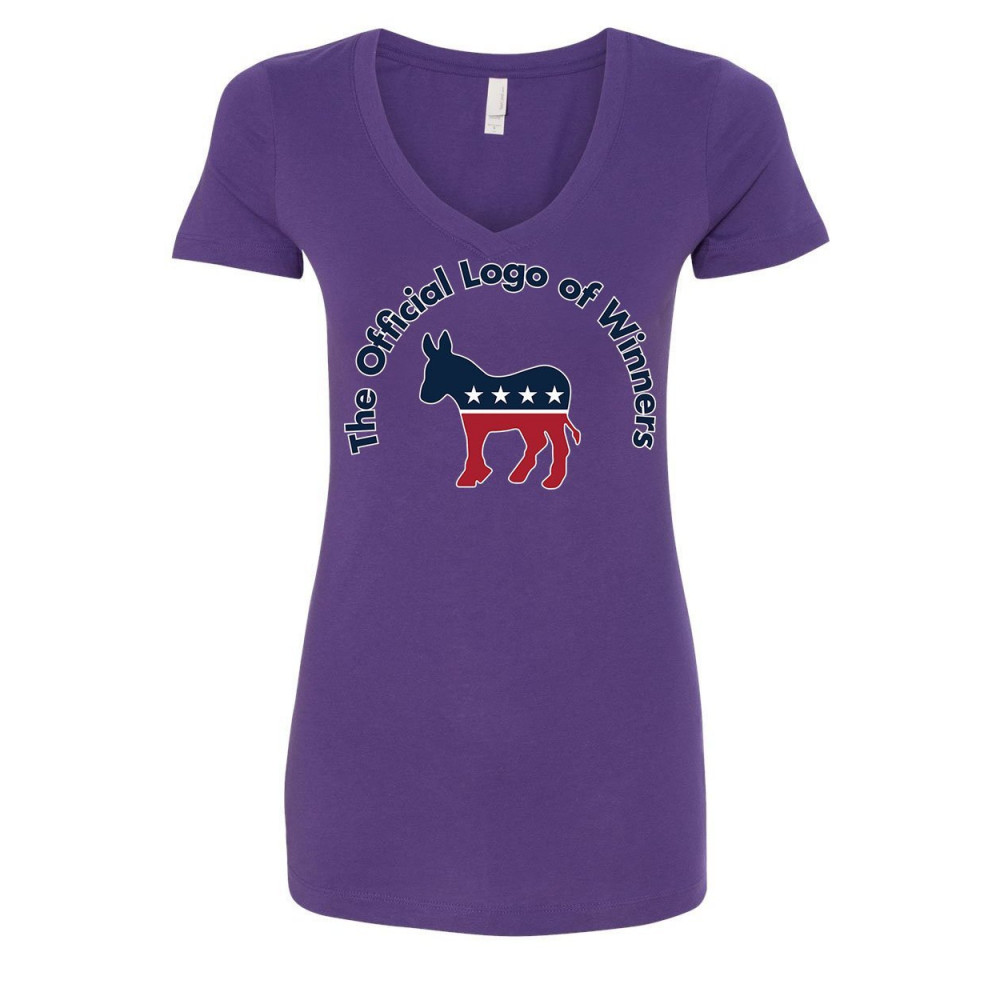 THE OFFICIAL LOGO OF WINNERS- DEMOCRATS the official logo of winners women's v-neck t-shirt usa democratic party donkey purple