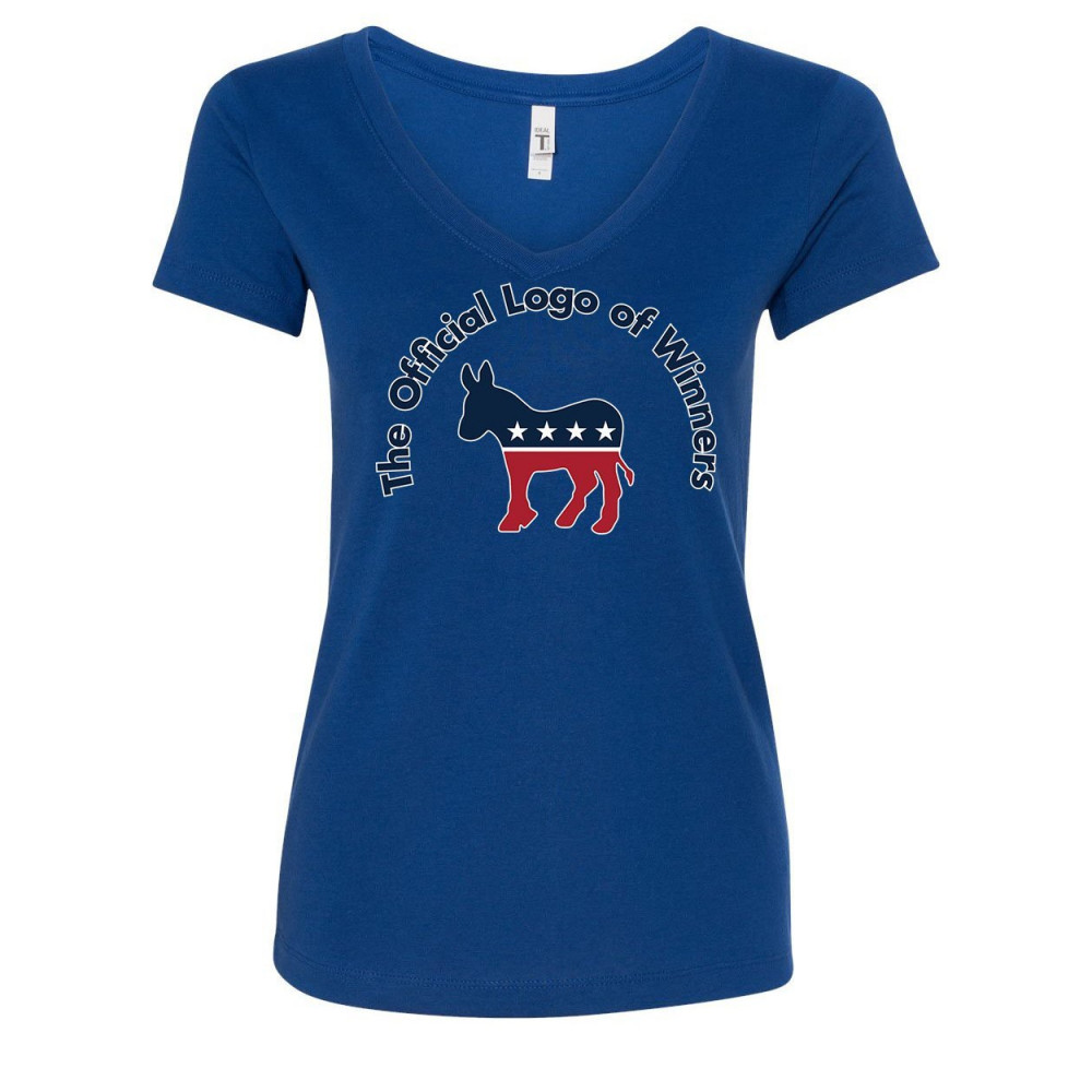 THE OFFICIAL LOGO OF WINNERS- DEMOCRATS the official logo of winners women's v-neck t-shirt usa democratic party donkey royal blue
