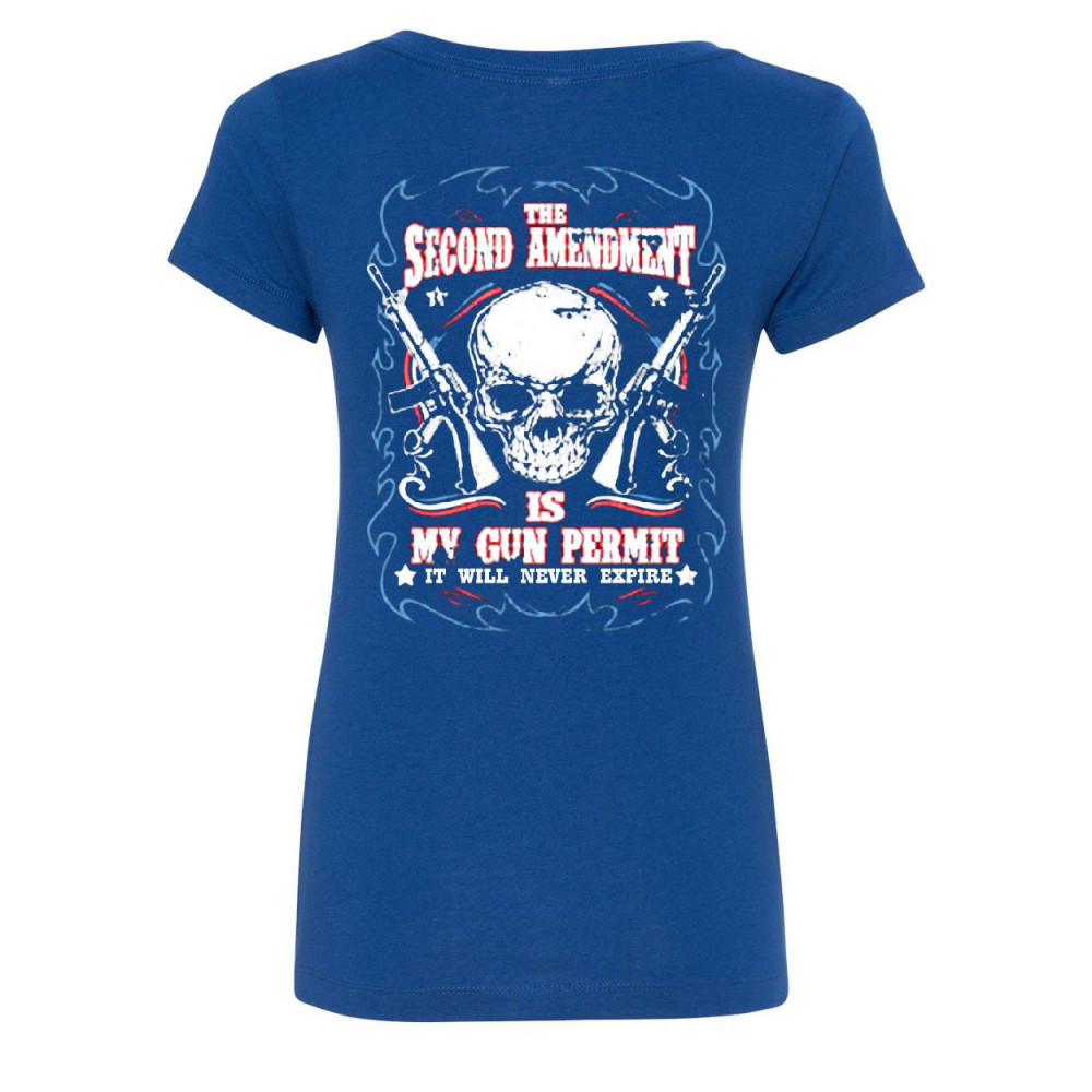 2ND AMENDMENT IS MY GUN PERMIT v-neck t-shirt gun rights royal blue