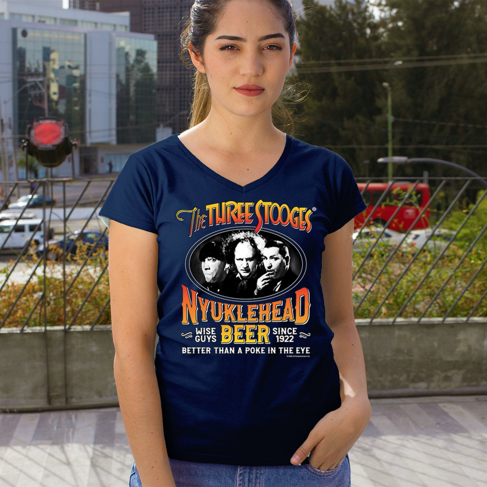 Celebrate the kings of comedy with our exclusive Three Stooges Nyuklehead Beer shirt. Featuring the legendary faces of Moe, Larry, and Curly, this tee is a tribute to the humor that has been tickling funny bones since 1922. Printed with "Wise Guys Beer," it's a playful nod to those who love a good laugh along with their brew. Whether you're a long-time Stooges aficionado or discovering their antics for the first time, this shirt is a conversation starter for any casual outing or Stooges-themed event.