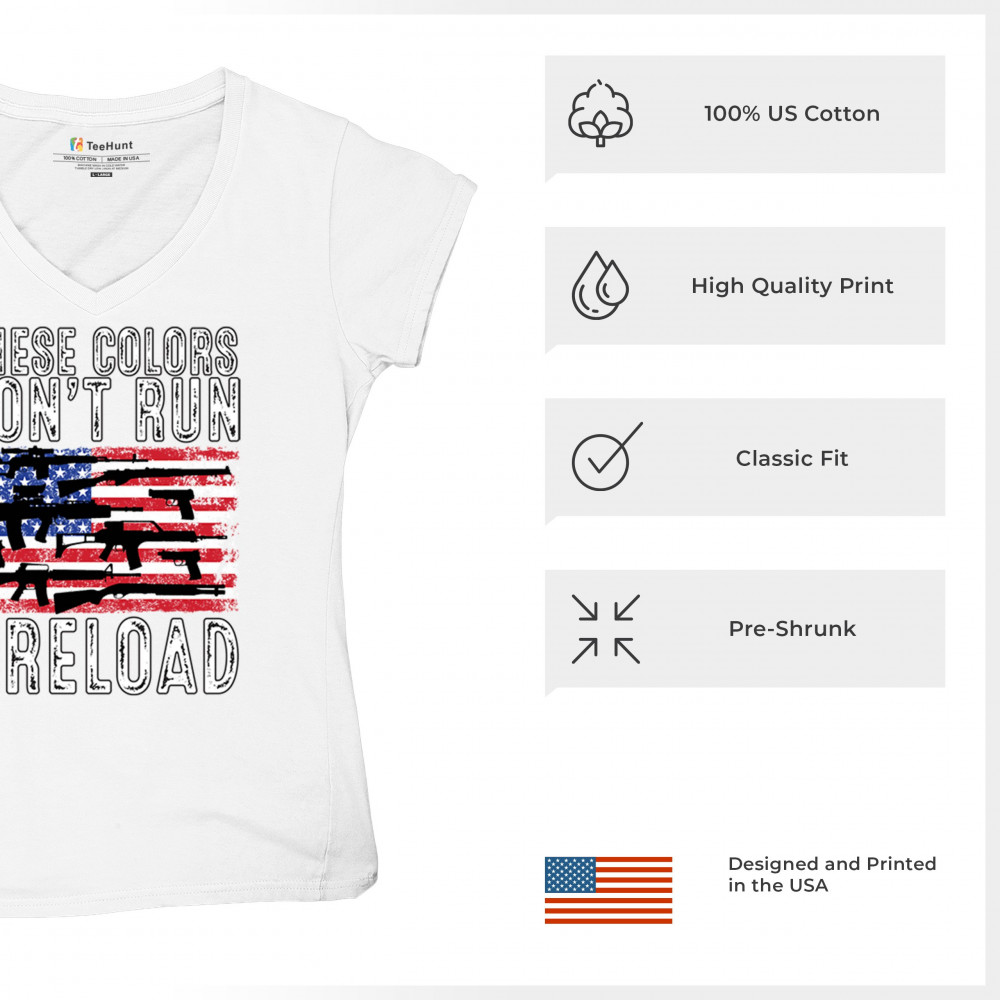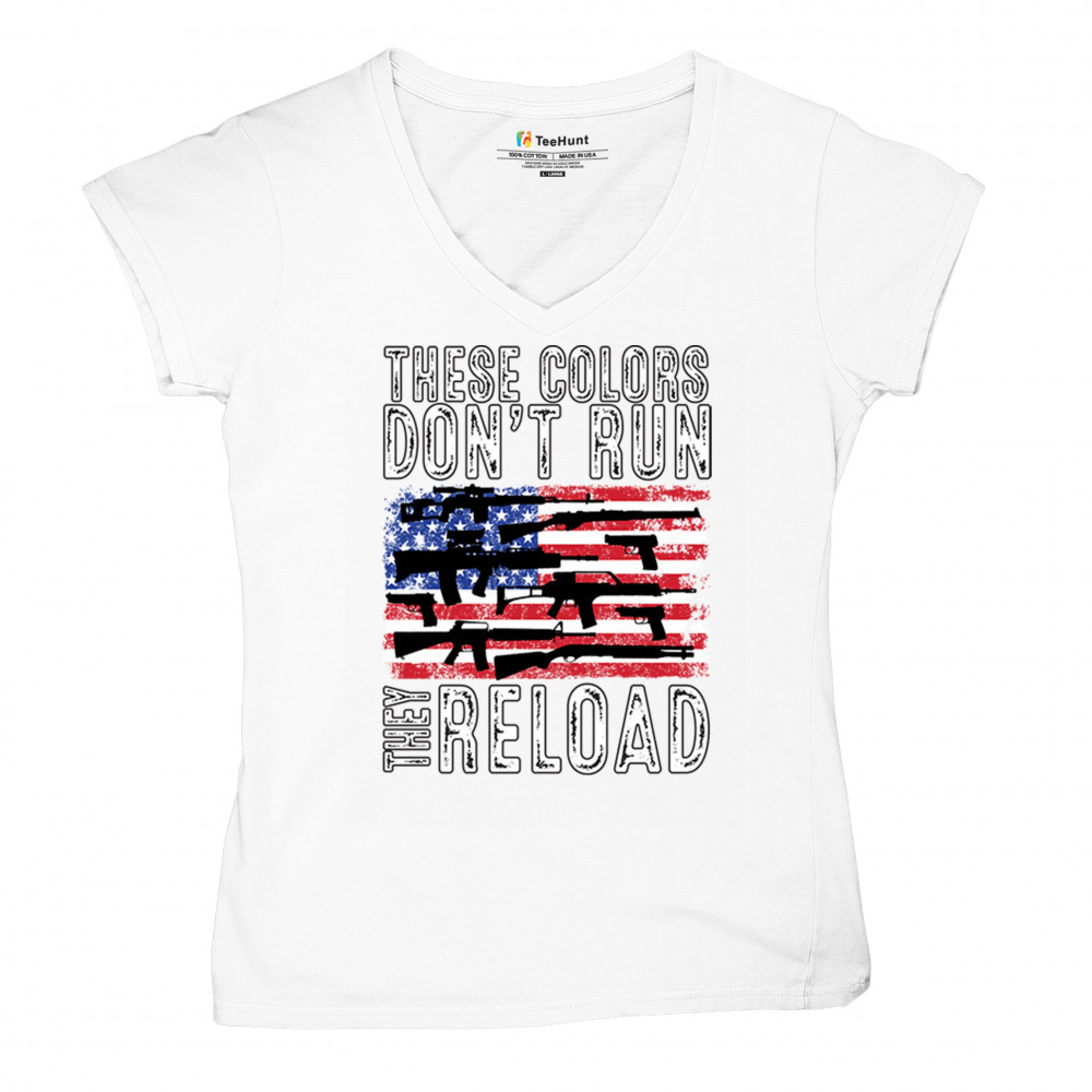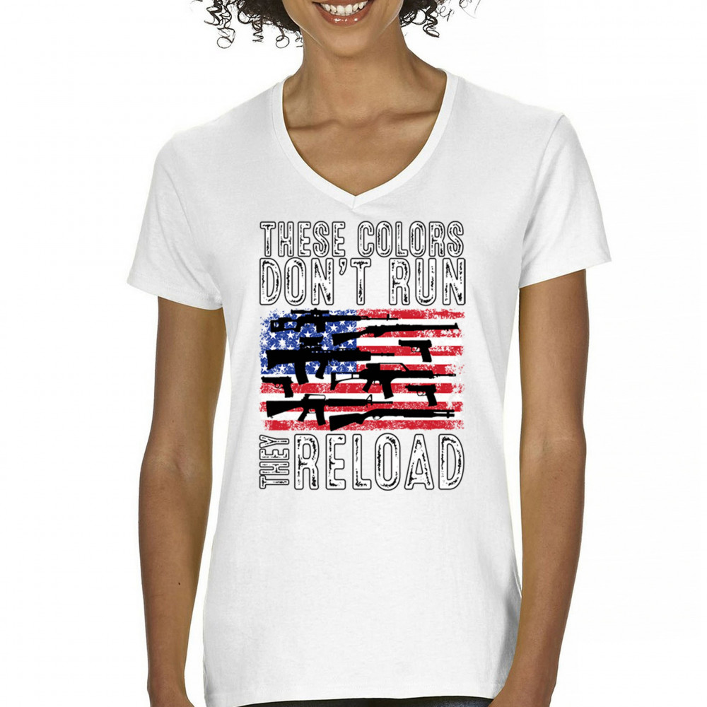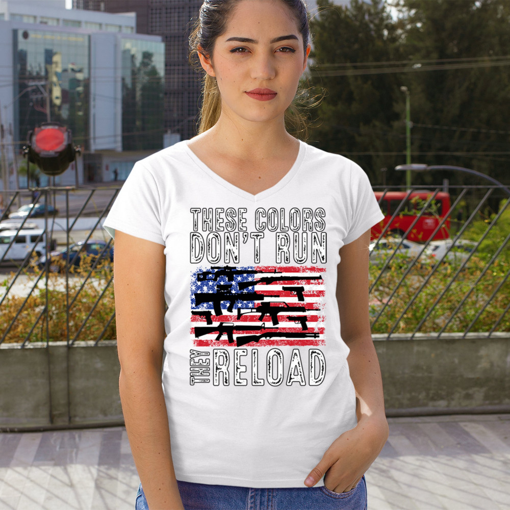 Explore the embodiment of patriotism with our 'These Colors Don't Run, They Reload' tee. A bold statement for those who honor freedom and resilience.