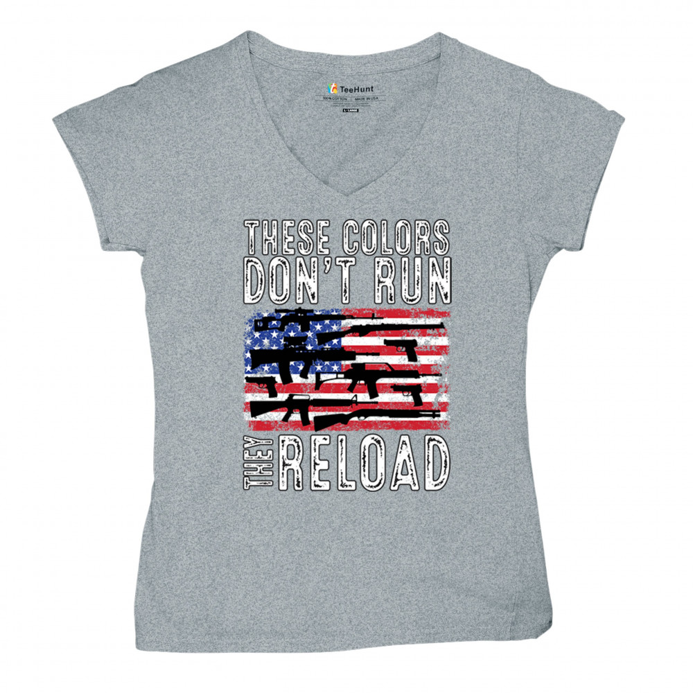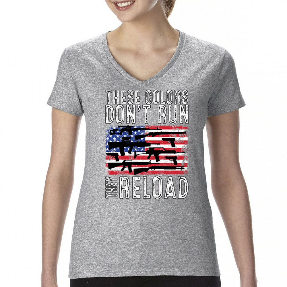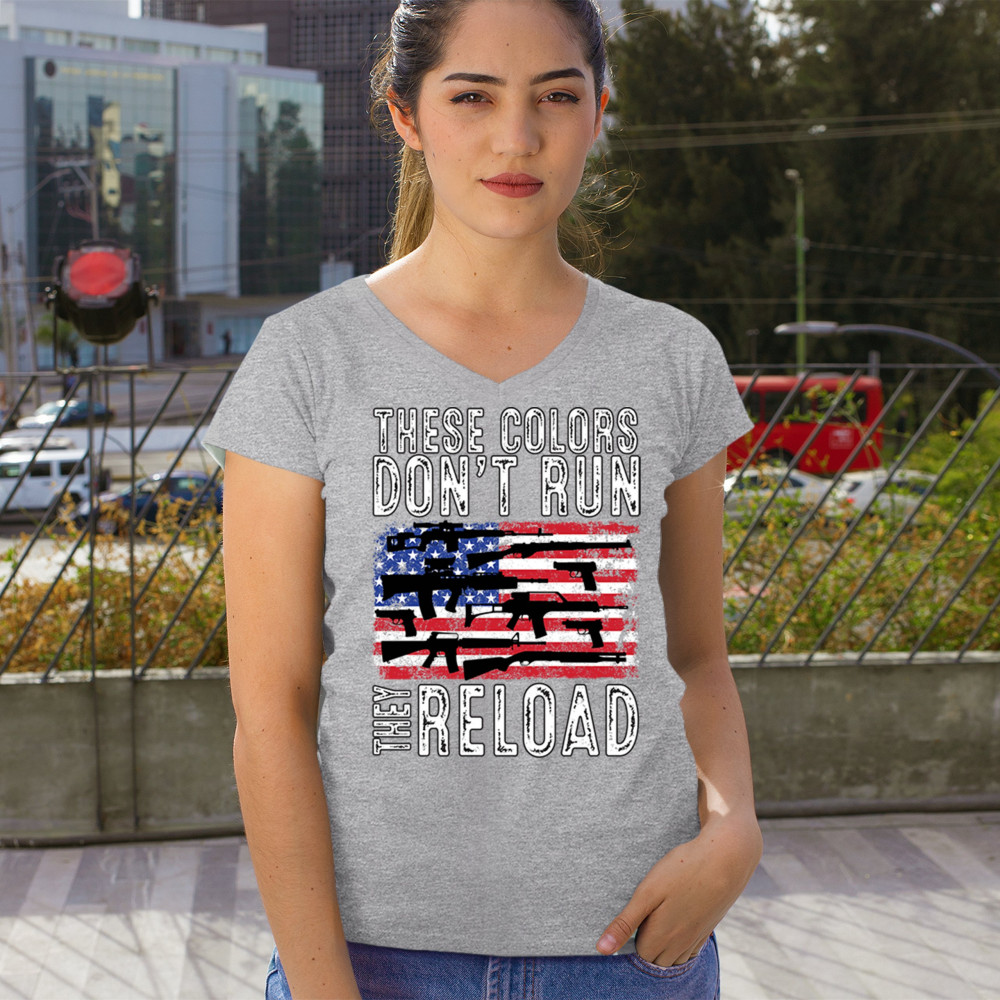 Explore the embodiment of patriotism with our 'These Colors Don't Run, They Reload' tee. A bold statement for those who honor freedom and resilience.