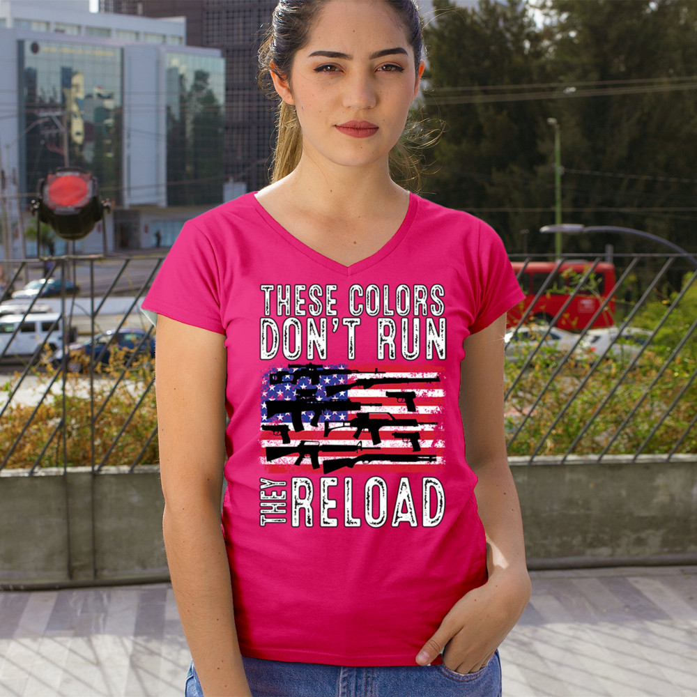 Explore the embodiment of patriotism with our 'These Colors Don't Run, They Reload' tee. A bold statement for those who honor freedom and resilience.