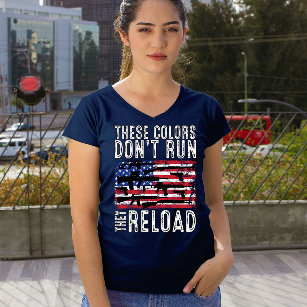 Explore the embodiment of patriotism with our 'These Colors Don't Run, They Reload' tee. A bold statement for those who honor freedom and resilience.