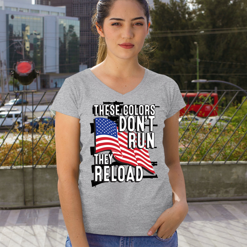 Discover the tee that boldly proclaims American resilience and liberty: 'These Colors Don't Run, They Reload'—a must-have for patriots and veterans.
