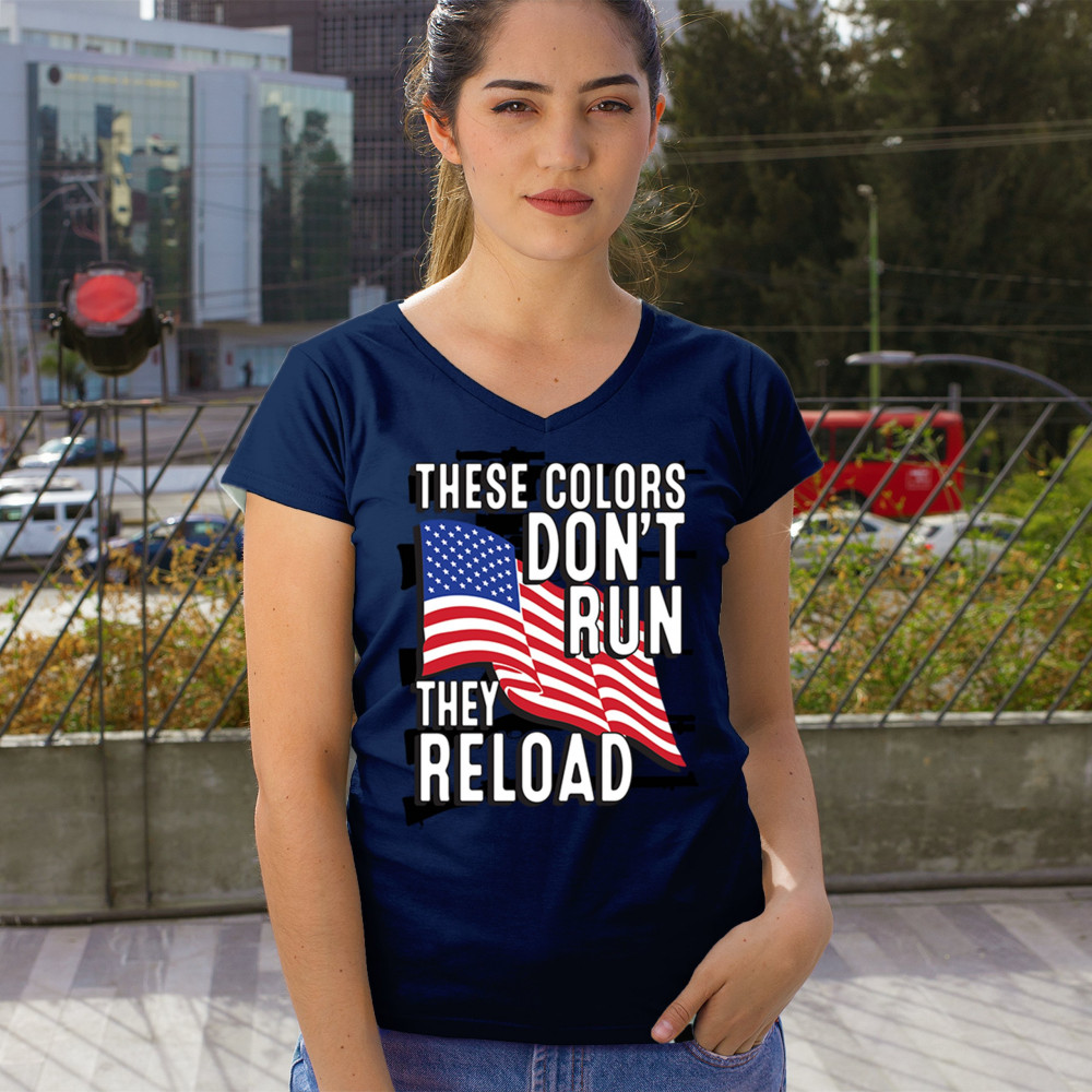 Discover the tee that boldly proclaims American resilience and liberty: 'These Colors Don't Run, They Reload'—a must-have for patriots and veterans.