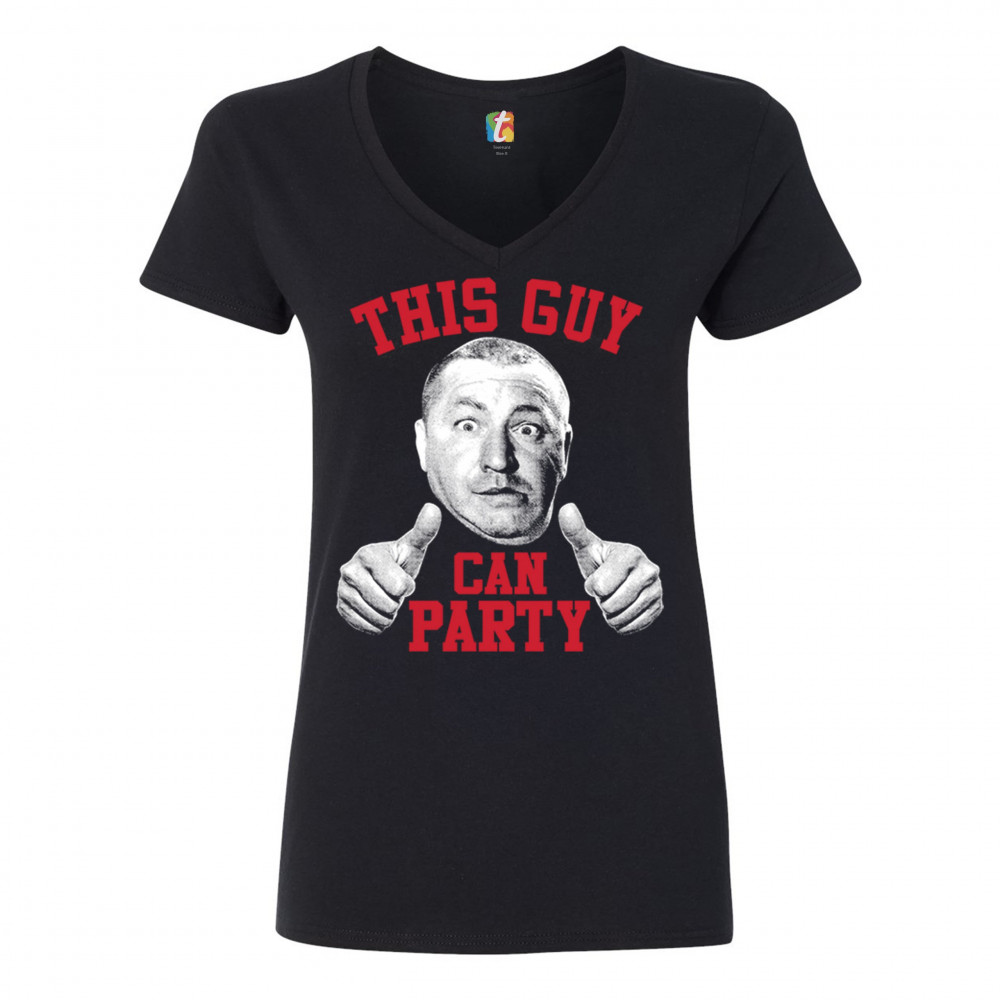 THIS GUY CAN PARTY women's v-neck t-shirt curly howard the three stooges tee black