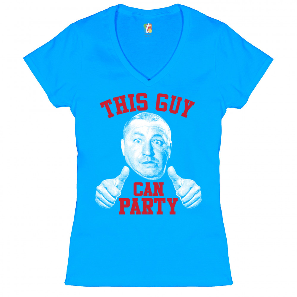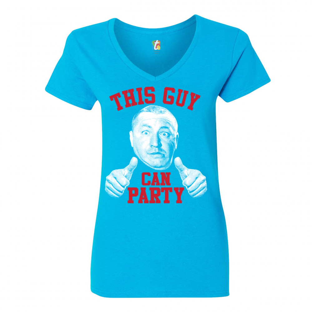 THIS GUY CAN PARTY women's v-neck t-shirt curly howard the three stooges tee turquoise
