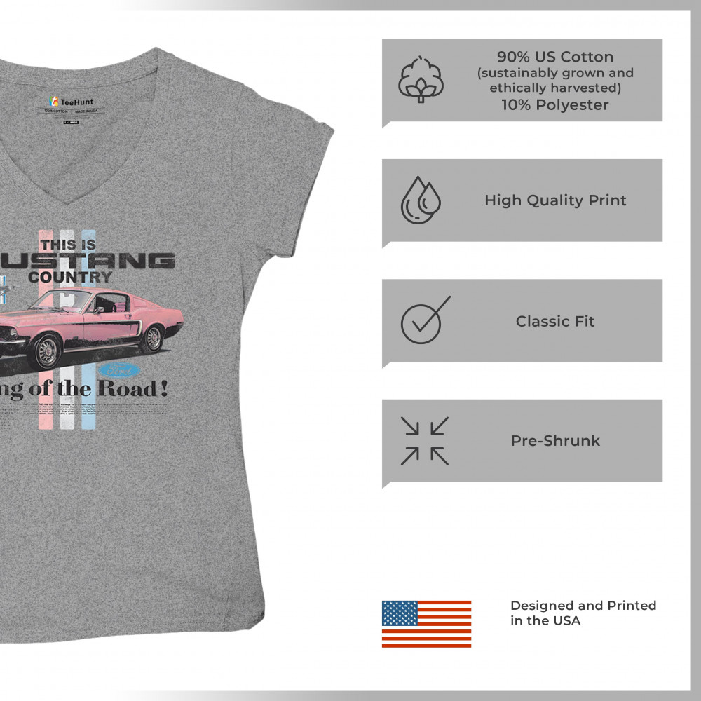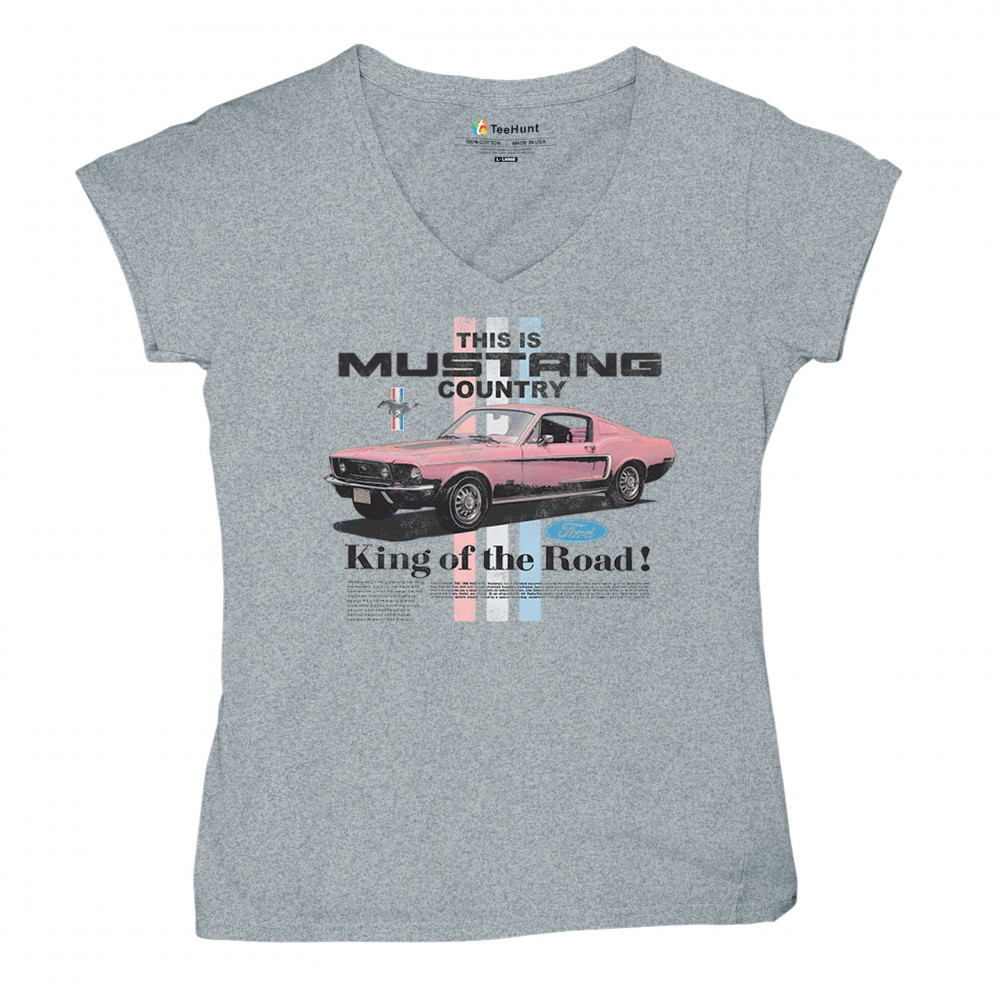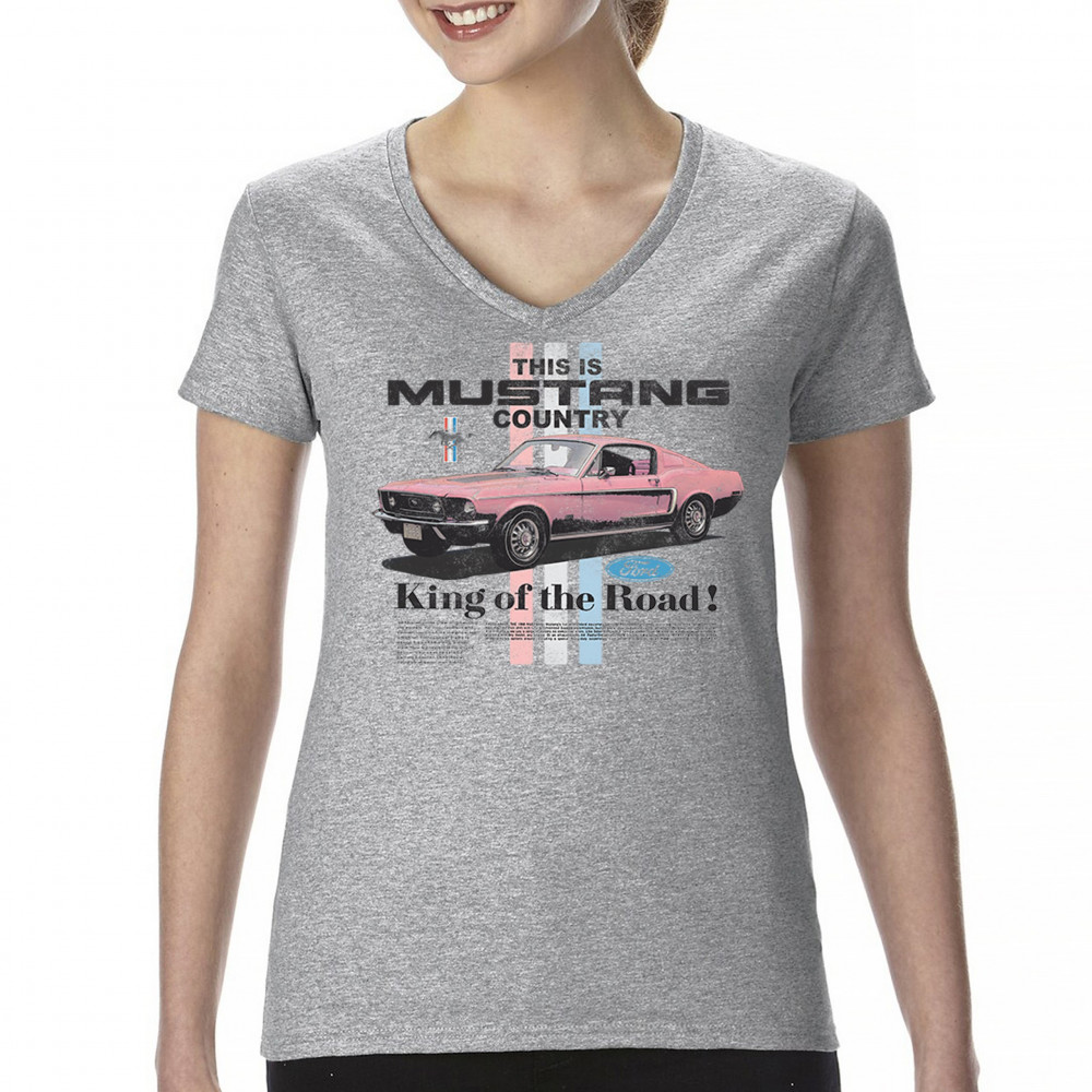 THIS IS MUSTANG COUNTRY women's v-neck t-shirt performance muscle car tee gray