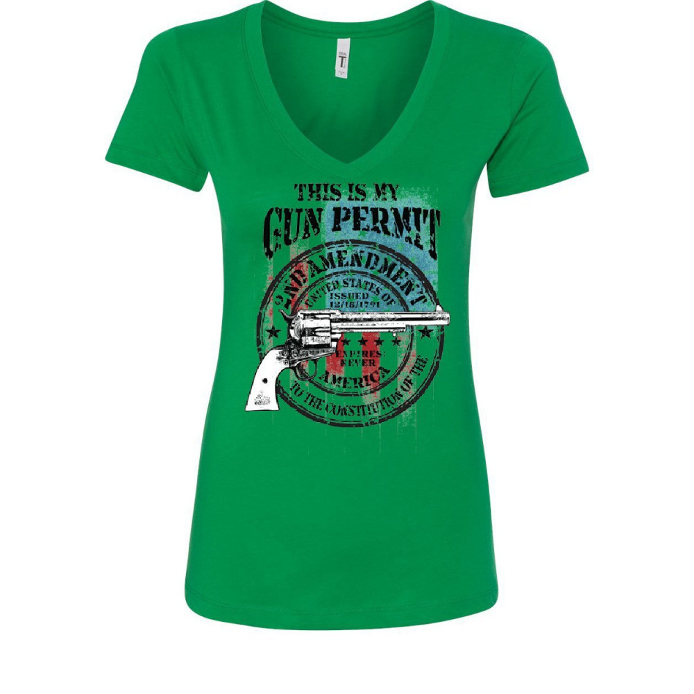 THIS IS MY GUN PERMIT women's v-neck t-shirt 2nd amendment right to bear arms green