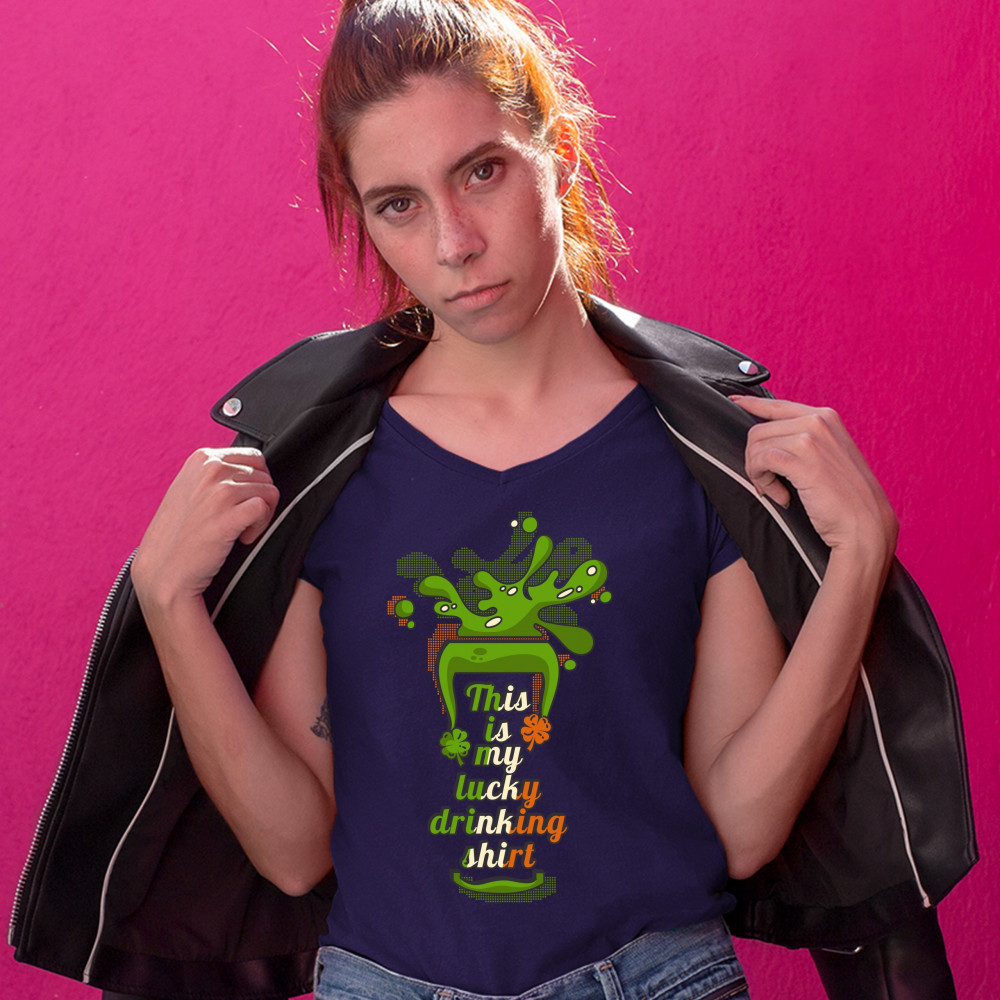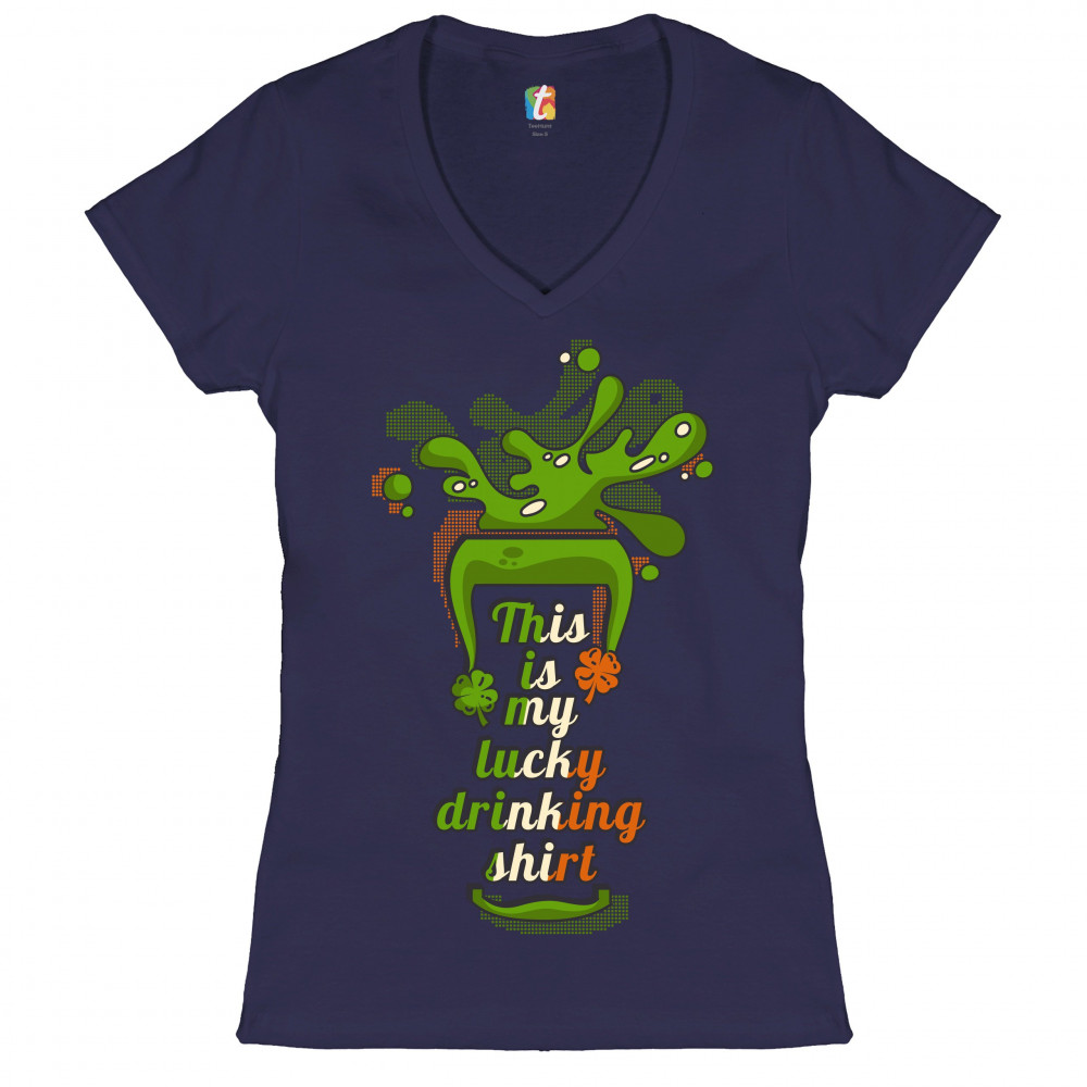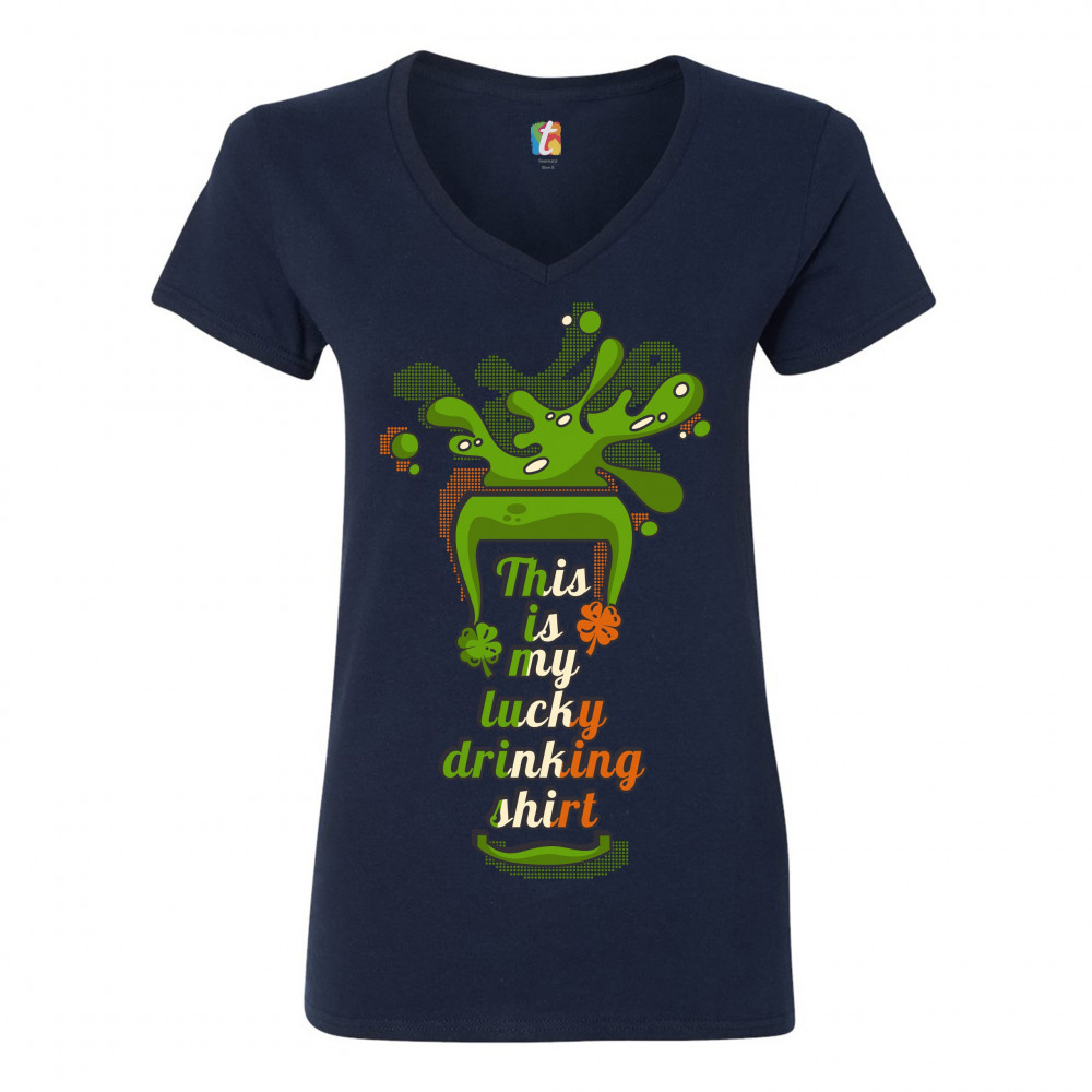 THIS IS MY LUCKY DRINKING SHIRT women's v-neck t-shirt st. patrick's day tee navy blue